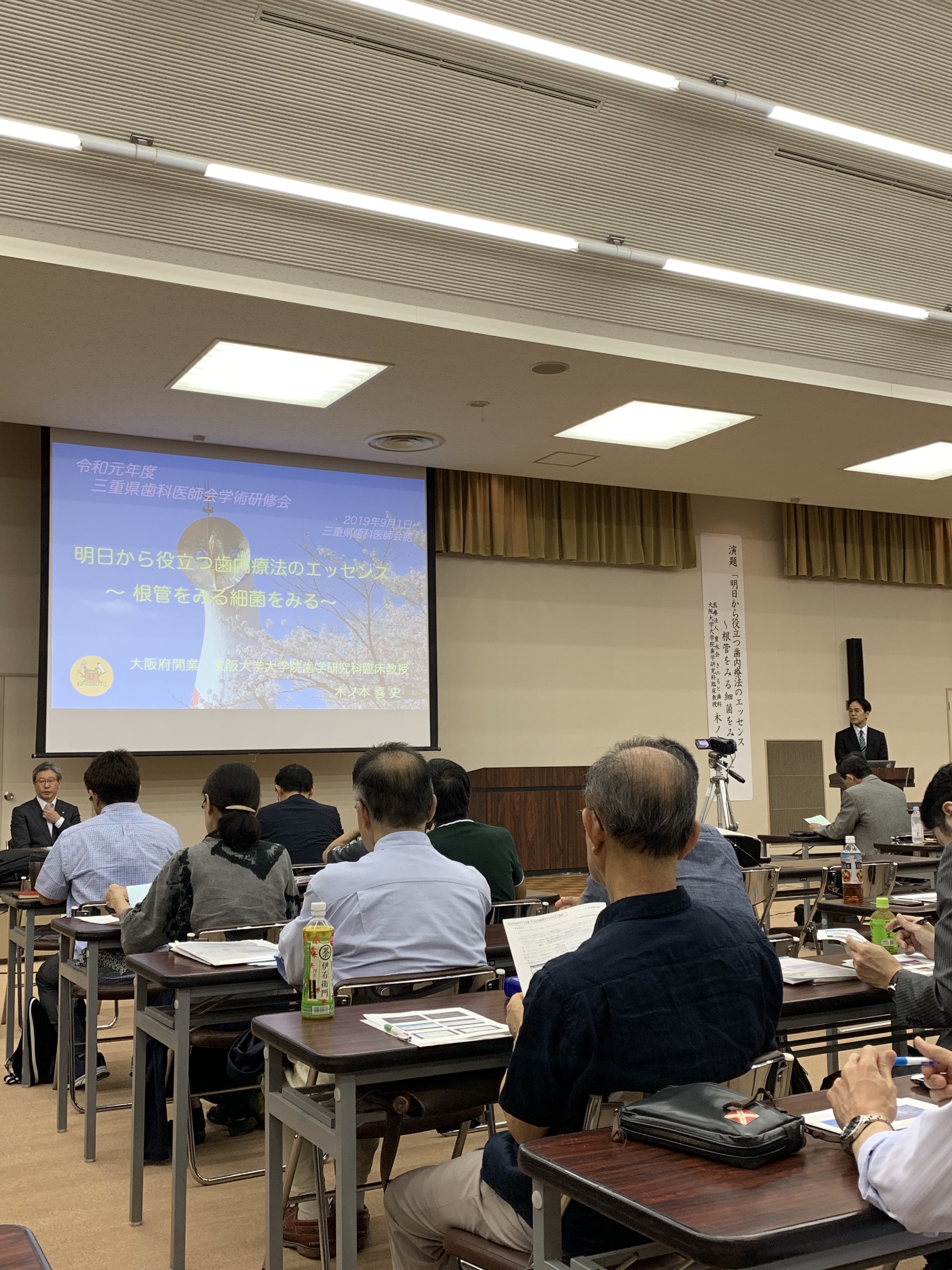 三重県歯科医師会の学術講演会に参加してきました。am10:00〜pm4:00の昼休憩を挟んでの講演会でした。『明日から役立つ歯内療法のエッセンス〜根管をみる細菌をみる』の講演内容は日常的に治療されている歯内療法を更に、詳しく学ぶ事により、より確実に治療成果を向上させるものでした。臨床に即した内容は、明日からの治療にすぐに応用できる内容でした。