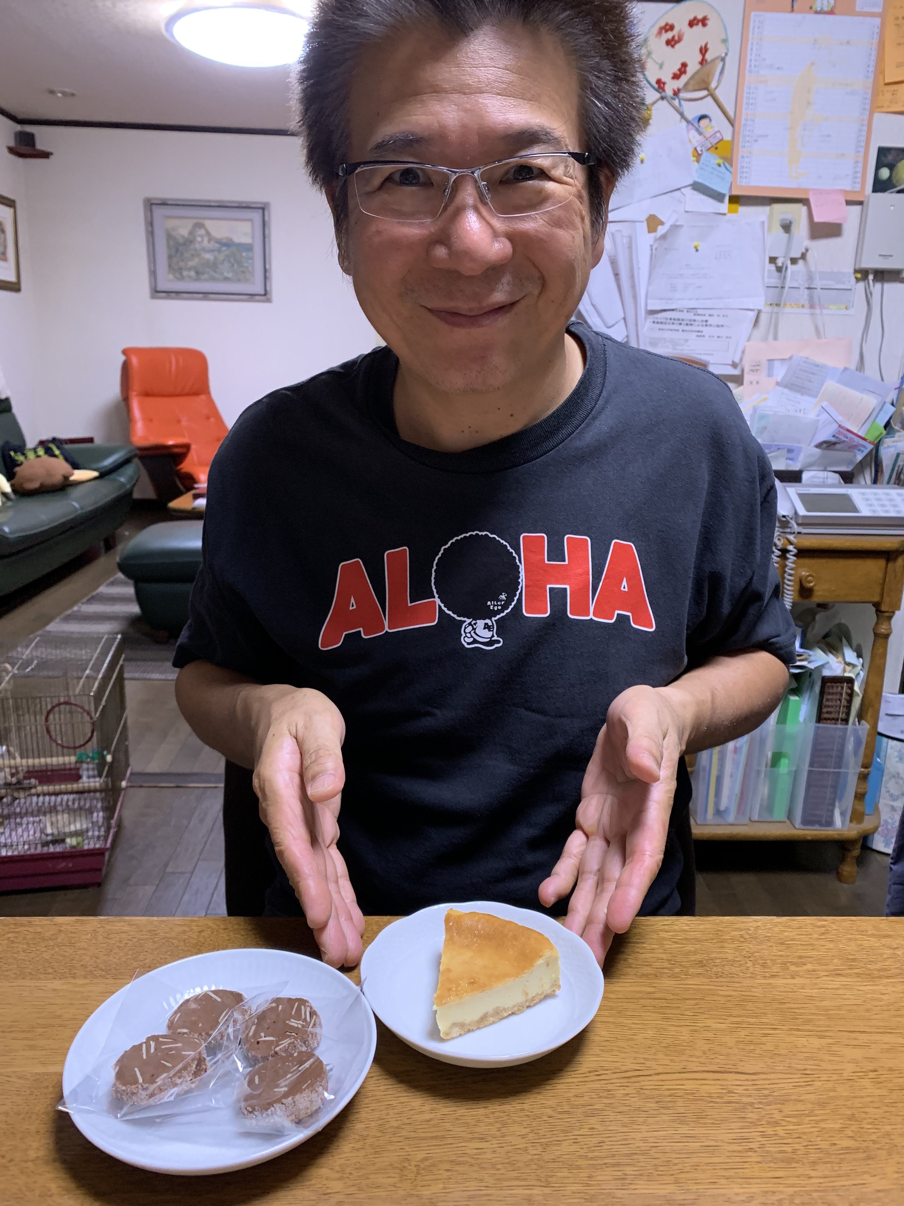 今日は、今年からさかえ歯科のメンバーになってくれた衛生士さんのスタッフがお菓子🍪を作ってきてくれました。チーズケーキ🧀と、クッキー🍪です。実は、彼女の趣味がお菓子作りと聞いて私が少しおねだりしました。家族みんなで夕食後に、コーヒー☕️を入れチーズケーキ🧀を食べました。嫁さんはチーズが少し苦手なのですが、そんな嫁さんが、美味しい、美味しいの連呼でした。娘は、どうやって作るのか教えてほしいと。私は、お世辞抜きに『今までに食べた全てのチーズケーキ🧀の中で1番美味しい、つまり、チーズケーキ🧀部門大賞が決定‼️」です。出ました、うますぎちゃん。近々、さかえ歯科の窓口で販売しようかと企画構想中です。『銀座に志かわの食パン🍞』に対抗して、『江島さかえ歯科のチーズケーキ🧀』。とにかく、とても美味しかったです。遠慮はしません、また作ってネとお願いしました。チョコクッキーも、これまたパティスリーキハチのクッキーに🍪勝ちました。最高級の美味しさでした。ありがとうネ😊❤️おかわり‼️