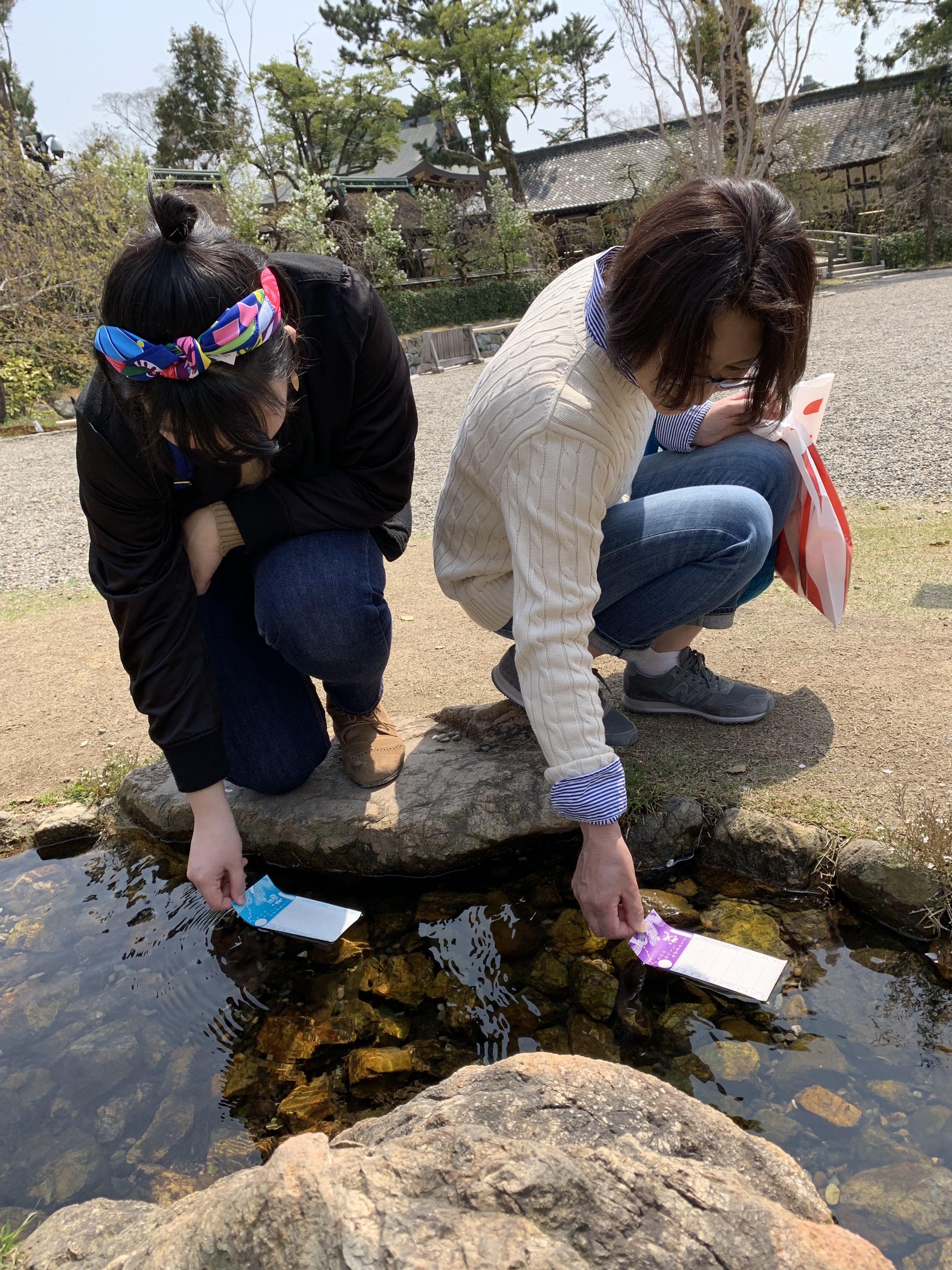 朝早く起きて京都の桜🌸を見に行きました。先ず学問の神様 菅原道真公が祀られている北野天満宮にお参りです。境内に入る前で大道芸の猿回しを見ることができました。お猿さんの顔は、誰かに似てるねって笑いながら見事な芸を感心しながら見ました。境内に入り頭が良くなる様にお願いをしました。水占いみくじをしてみました。おみくじを水に浸すと文字が浮かび上がる仕組みになっています。暖かな日に庭園の小川にみくじを浸し、雅な時間でした。気がつくとおじゃる丸の様な話し方になっていました。私は仕事、嫁さんは健康、娘は学業に関する占いを選びました。先ず嫁と娘が水に浸し浮かび上がった文字を読むと『小吉』でした。私はそれ以上を出すぞと、意気込んで気合いを入れてヒタヒタしました。浮かび上がって来た文字は『小吉』。なーんだ引き分けかと、思いながら「願い事・心穏やかに運を持てば叶う。健康・焦らず気長に養生せよ。金銭・努力すれば自ら開かれる。」と読み上げると「あれ〜っ。私達も。」偶然の一致なのか、それともみんなそうなのか。神様の前ゆえにあまり深く考えないようにしました。北野天満宮前の粟餅所・澤屋にて粟餅を食べました。この前に澤屋に入った時、嫁さんが大きな声で「すいませ〜ん。栗餠🌰くださ〜い。」と店に入り、中の職人さんが「栗餠🌰じゃなくて、粟餅ですね。」と直され、赤っ恥をかきました。でも今回は店内でイートイン、時落ち着いて「粟餅のこし餡、きな粉をください。」と注文しました。グッドジョブ👍。粟餅の上品な味は、小腹が空いた私達の欲求を満たしてくれました。