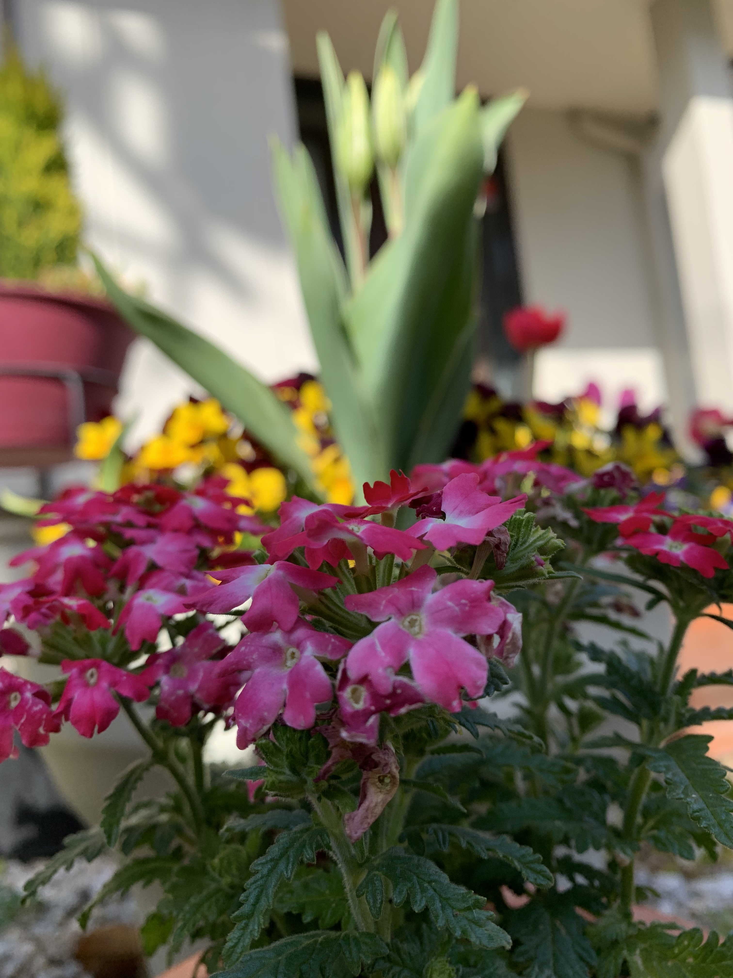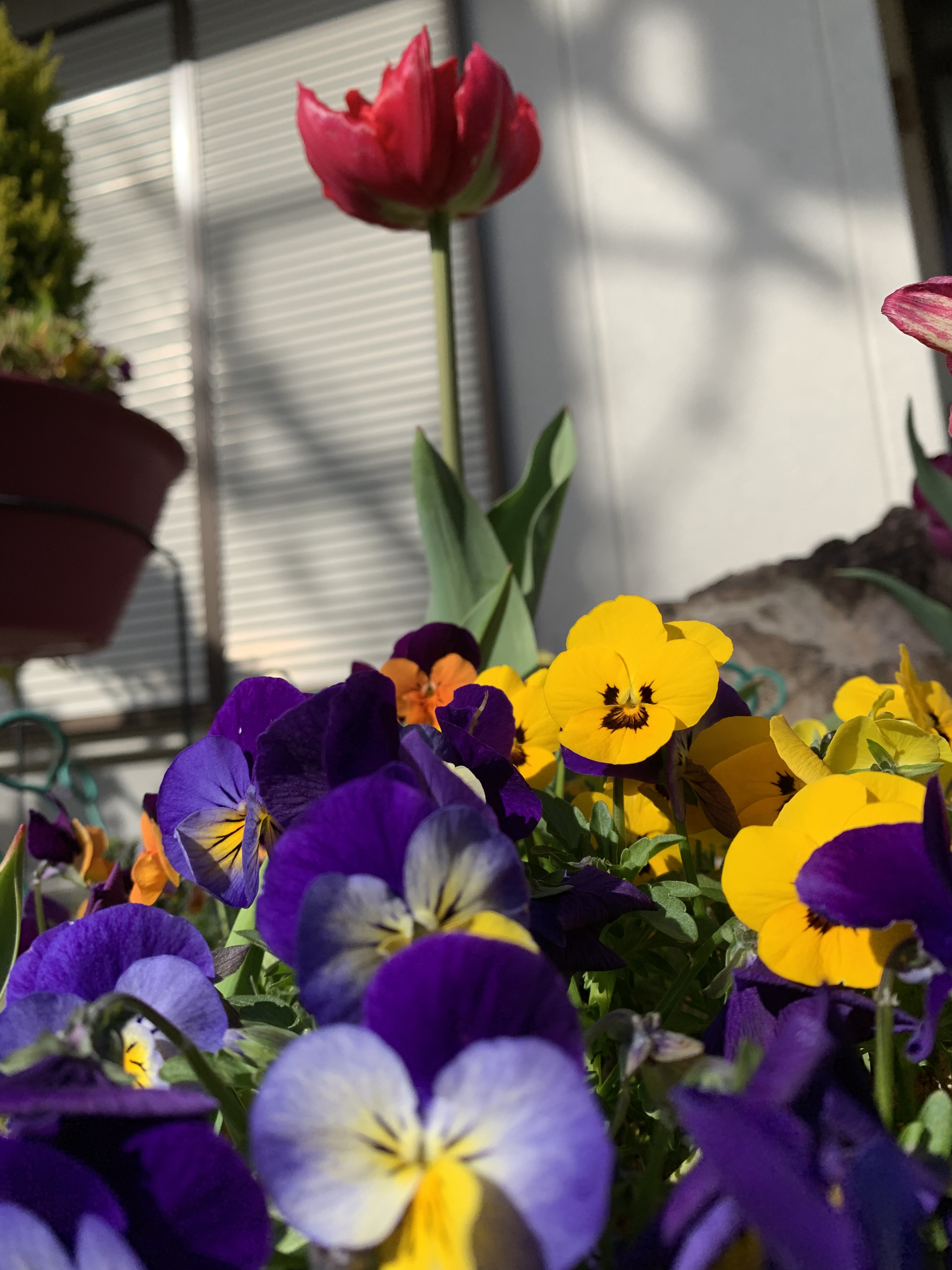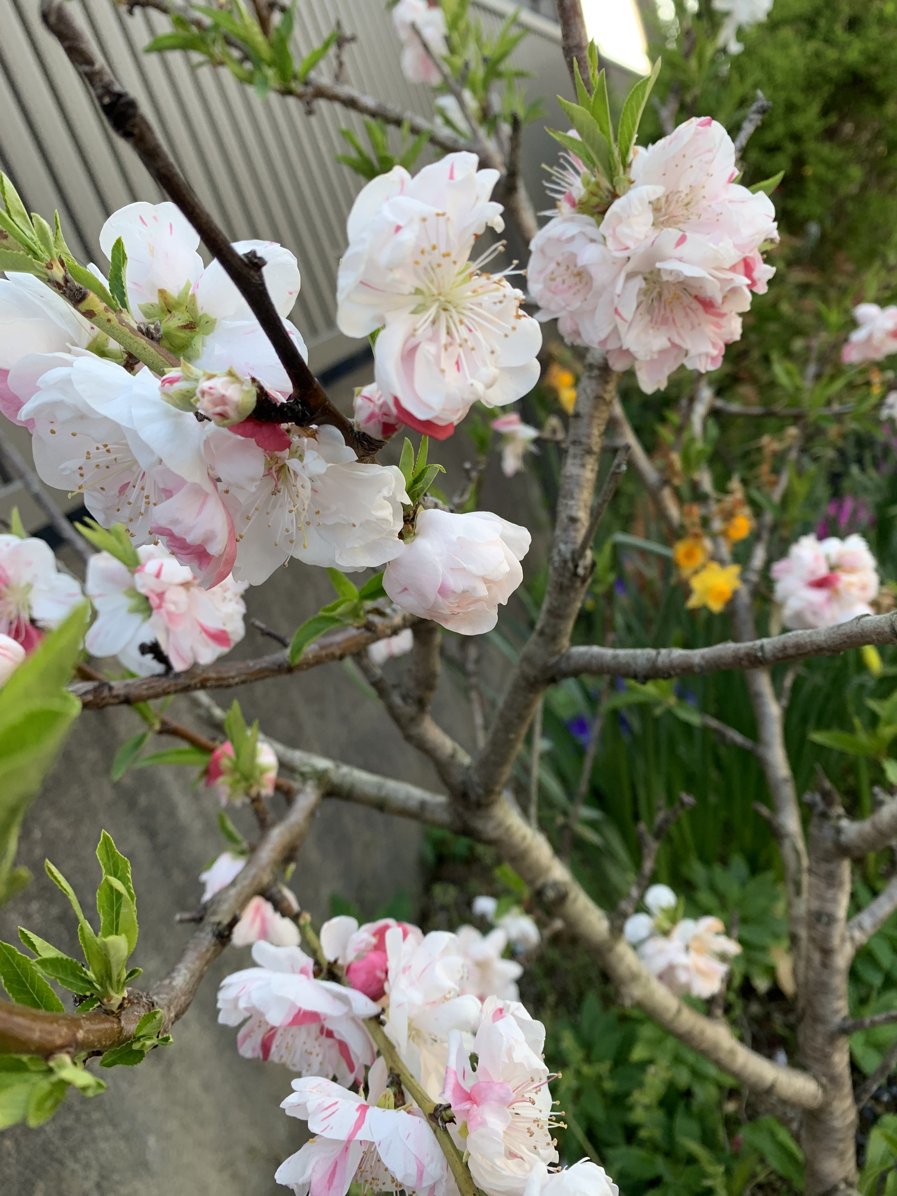 本格的な春到来です。去年の晩秋に植えたチューリップ🌷が綺麗な花を咲かせています。冬の間は少し元気のなかったビオラの花も、暖かな陽気のおかげで生き生きしています。観賞用の桃の花もめでたい色合いの花を咲かせています。夏には桃🍑の実がなります。以前におっかなびっくりで、その桃の実をみんなで食べ、あまり美味しくなかったことを思い出します。縁起物ですので今年も私だけだろうと思いますが食べようと思います。様々な色の花々が咲き乱れ、庭をカラフルに綺麗に飾ってくれています。