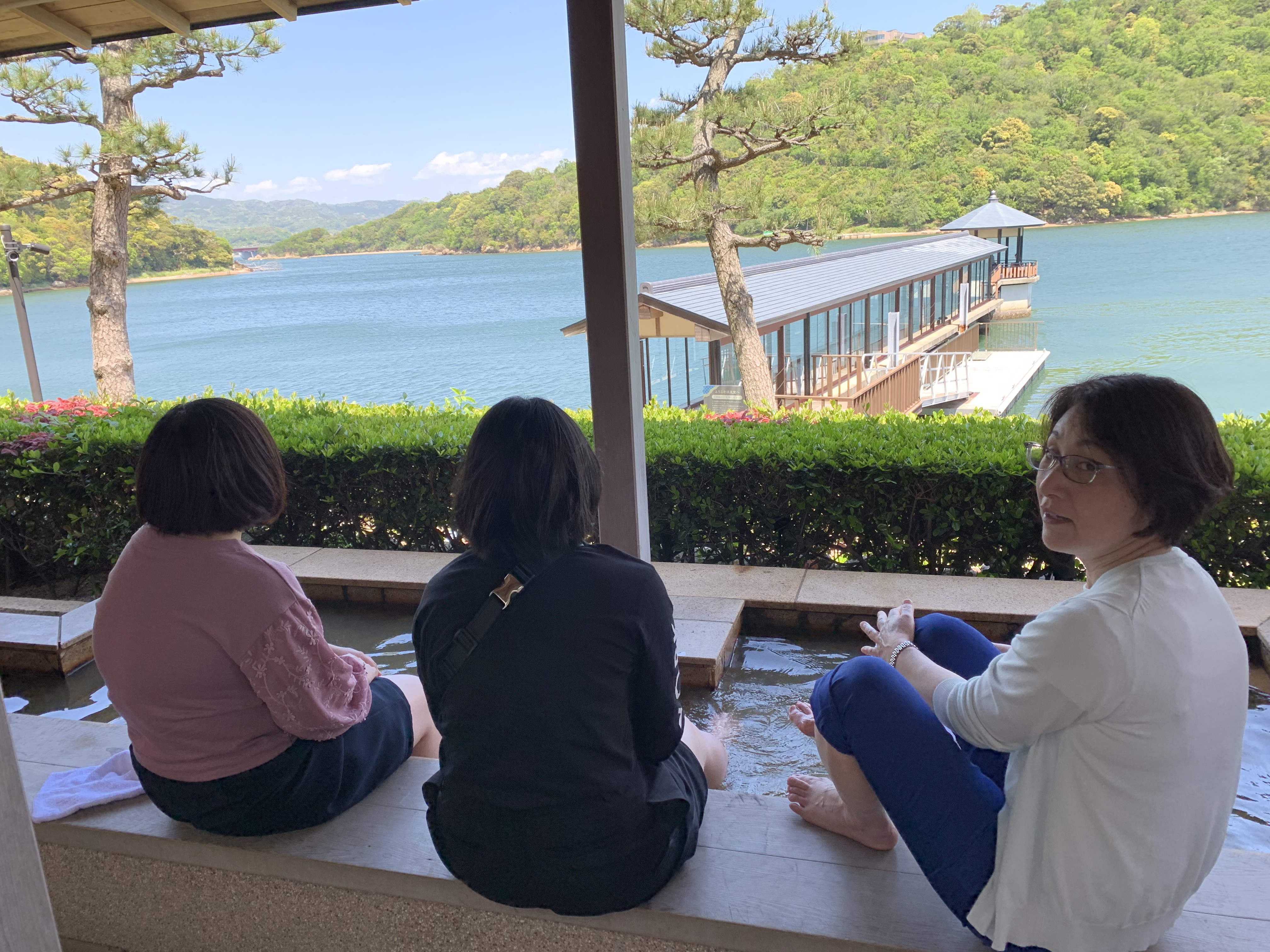 ゴールデンウィークに浜名湖舘山寺温泉でのんびり温泉♨️につかった後、昨日の雨が嘘の様に爽やかな五月晴れの空となりました。ホテルの朝食はバイキング。あまりガツガツと食べ過ぎないようにと食事会場に臨むのですが、動けないトドの様になって「苦しい苦しい。早く部屋に戻って横になりたい。」と言いながら部屋に戻るのは学習能力がないと、毎回反省する次第です。部屋に戻り、横になって、牛になって暫くしてから、ホテルの周辺探索です。足湯を見つけて入り、温泉レポーターの様な、それらしいコメントをします。舘山寺を参拝し、御朱印をいただきました。