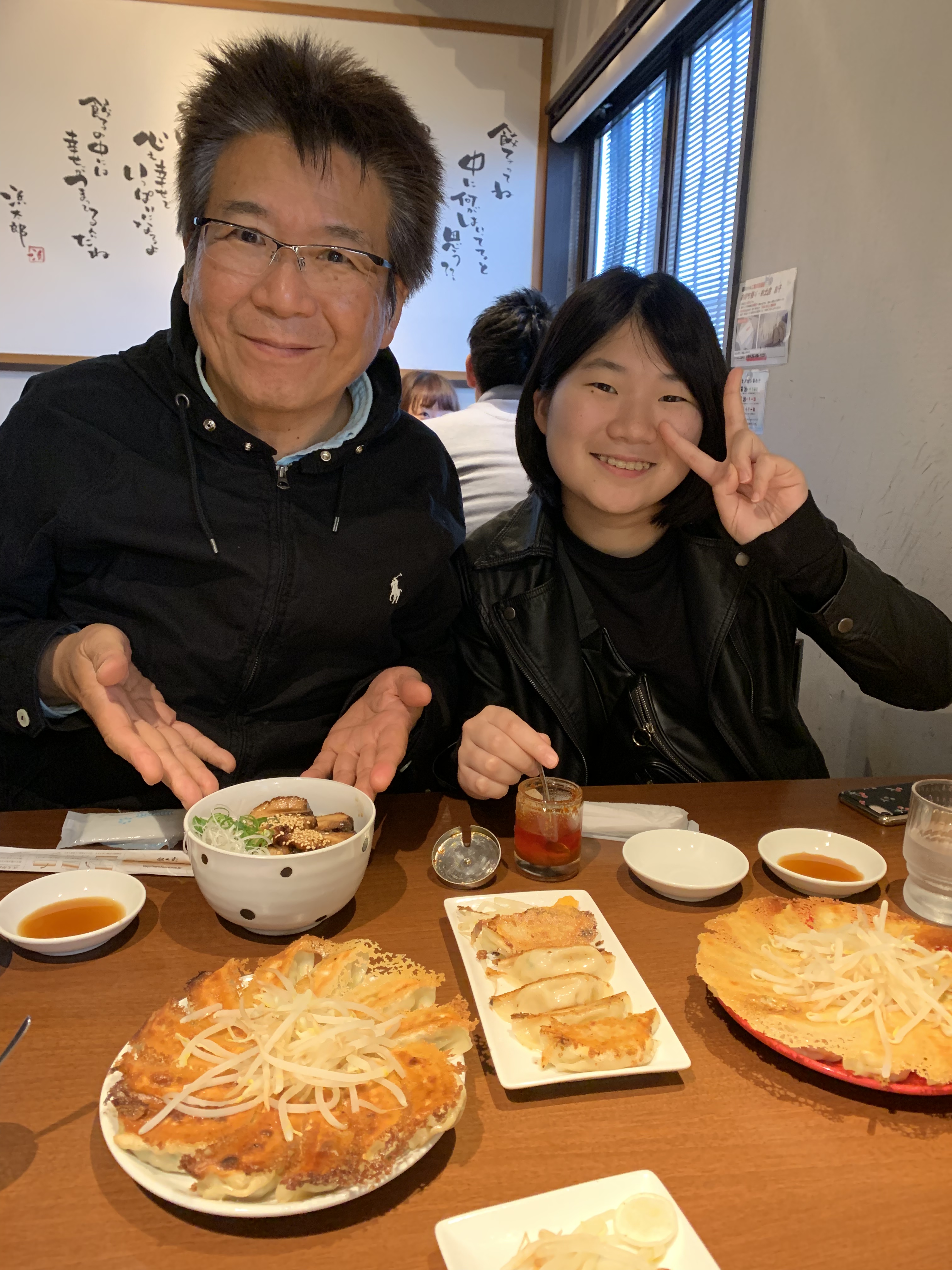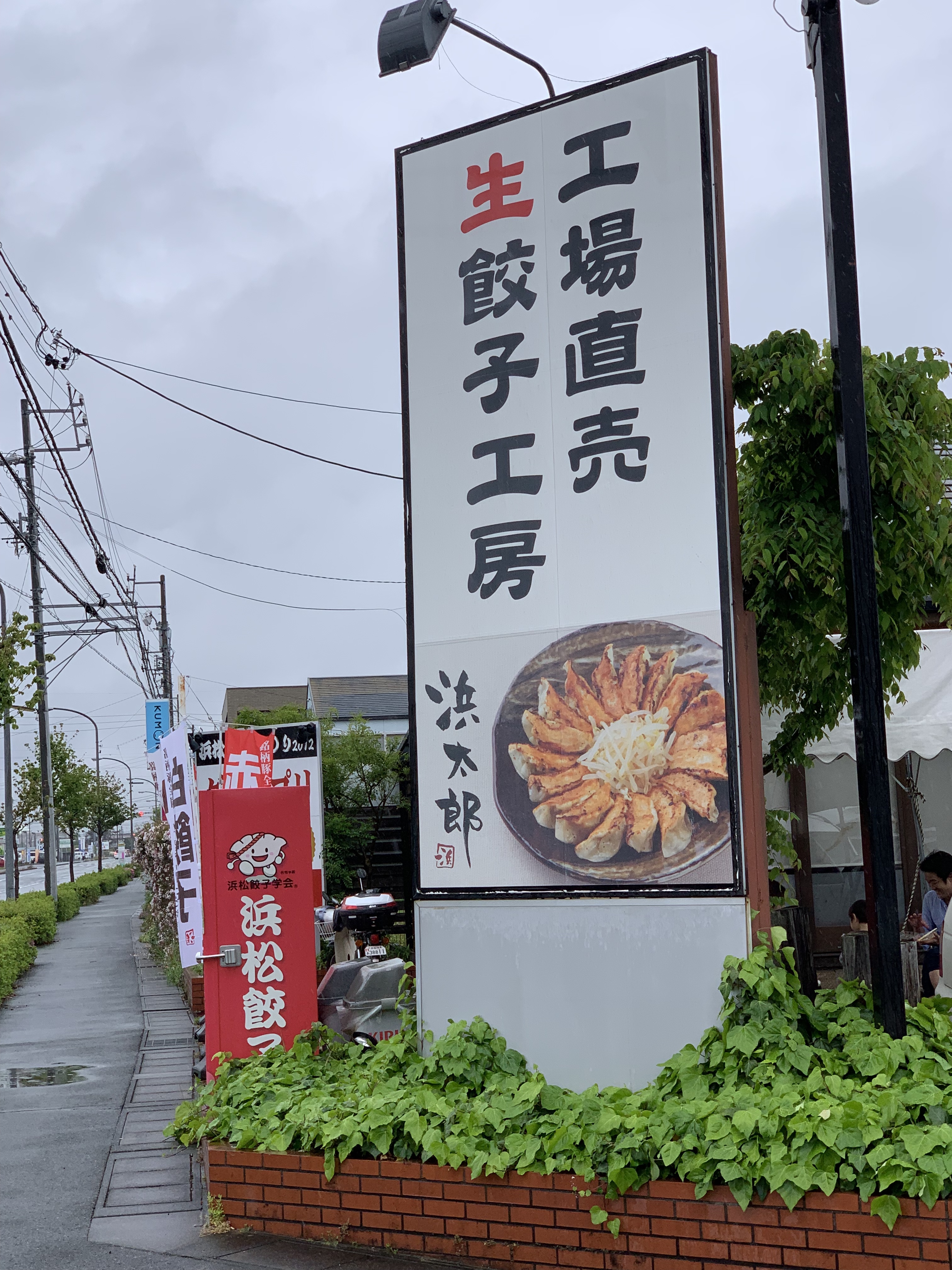 浜松は餃子🥟で有名な街です。ホテルのパンフレットで、おススメの餃子🥟の店『浜太郎』を目指します。途中におばあちゃんの靴👞を探すというミッションを抱えながら。10分位車で走るとホームセンターを見つけました。奇跡的な事に1200円位の靴👞を見つけました。ホテルで待ってるおばあちゃんの喜ぶ顔が浮かびます。更に10分走って『浜太郎』に到着です。pm3:15昼食時間は過ぎているというに行列ができていました。1時間15分の待ち時間の間、席に着きました。ニンニク入りの赤餃子、ニンニク無しの白餃子、チーズ餃子、エビ餃子とチャーシュー丼を注文。ミステリーサークルの様な円形のきつね色に程良く焼き上げられた餃子🥟の中央部にはもやしが乗せられています。テレビでよく見るやつです。嫁さんと娘達も大興奮です。餃子🥟の数を数え、1人何個の計算をしてから「いただきまーす!」美味い😋‼️流石、行列が出来るのも納得の味でした。待った甲斐がありました。おばあちゃん👵おじいちゃんにお持ち帰り用意しました。帰りの車🚗の中は餃子の匂いで充満していました。さっき食べたばかりなのに「おばあちゃん達、残さないかなぁ。」とライオンの捕らえた獲物をあさるハイエナの4匹が車🚗に乗っていました。
