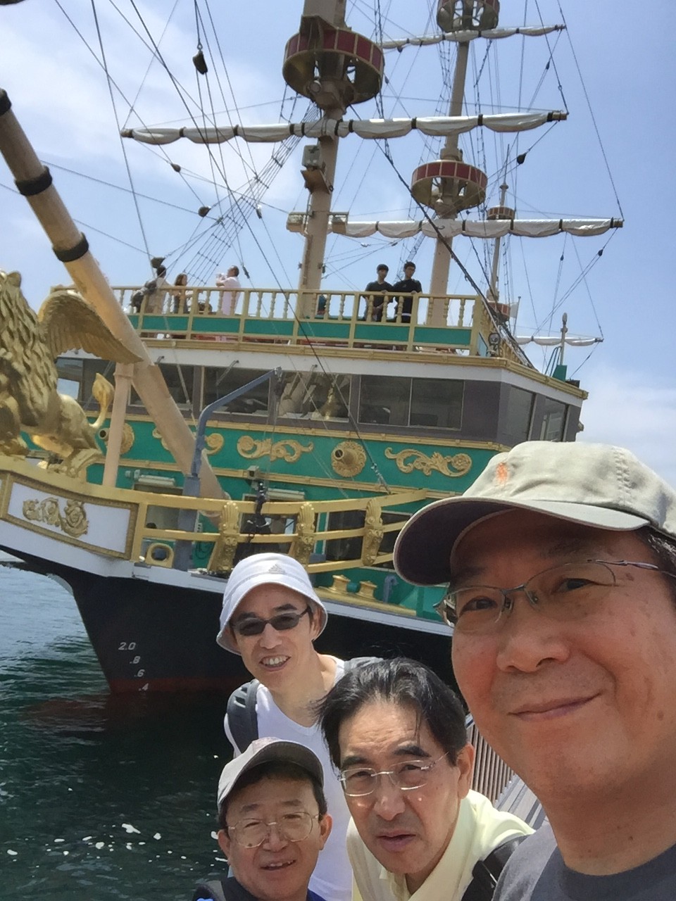 ぐっすり寝た朝、朝風呂に入り朝御飯をしっかりと食べ二日目の予定は、海賊船で芦ノ湖を遊覧し、ロープーウエイで大涌谷に行き、黒玉子を買う事がミッションです。天気予報では暑い☀️一日になるとの事でした。すると4人の内の一人(私ではありません)が、熱中症対策と称してカラになったペットボトルに、部屋にある急須にティーパックを入れお湯を入れてお茶を作り入れ始めました。「どんだけ、お金残すの。」鋭いツッコミに大爆笑でした。ある先生においては、ホテル内の自販機で170円(コンビニなら120円)のペットボトルのお茶を買って来たのに対して「原価知ってるのに。」と言うと「しまった!最大の不覚!どうしよう。」みんな一様 歯医者さんです。ちなみに私はコーヒーを作り、アルミボトルに入れました。準備万端で出発です。