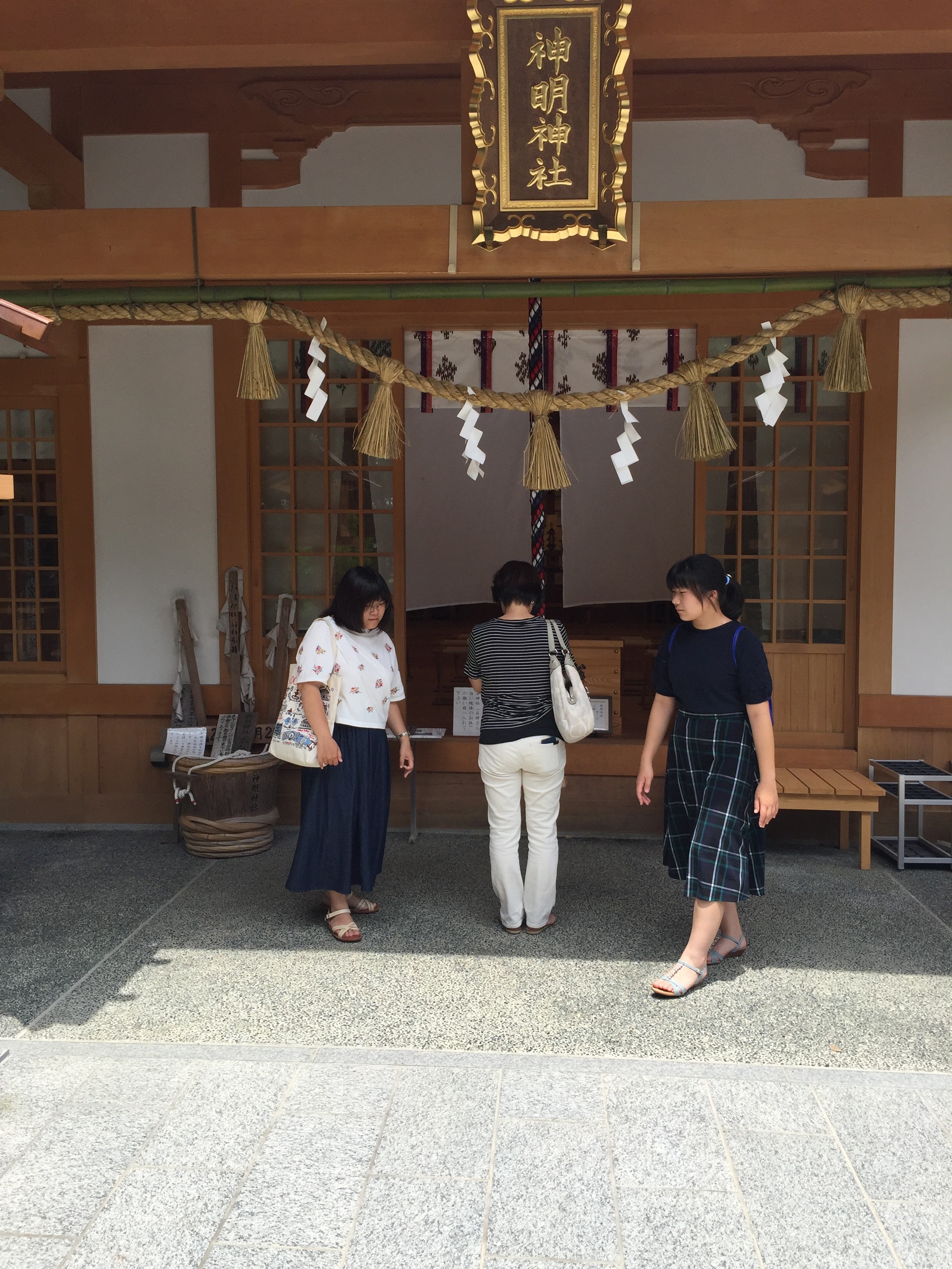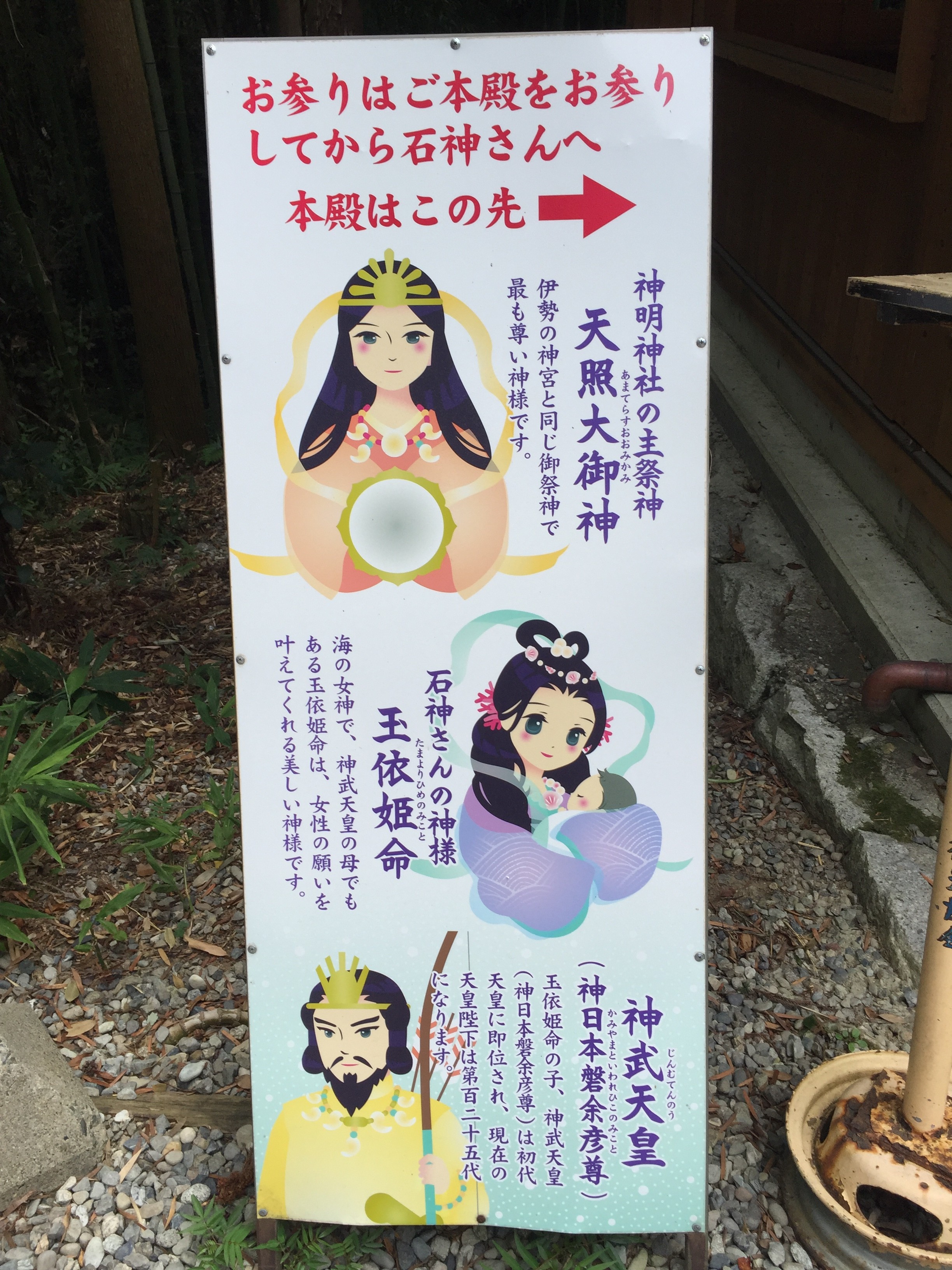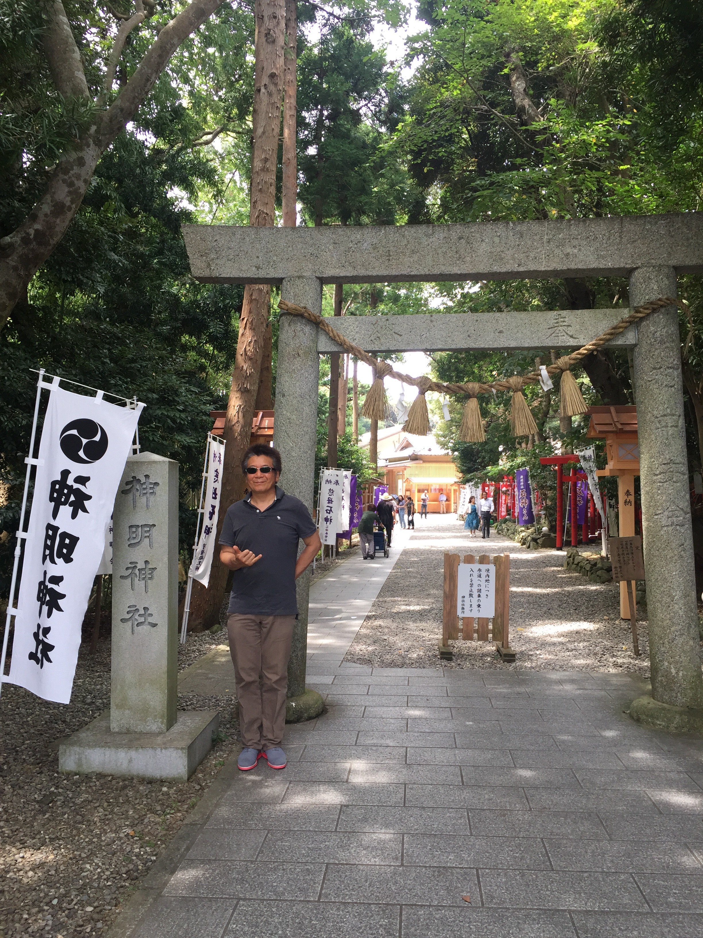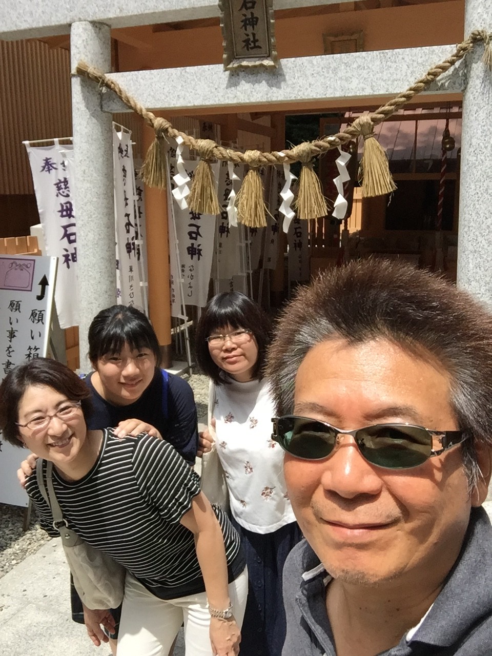 鳥羽市相差町の神明神社 通称「石神さん」を詣って来ました。女性の願い事を必ず一つは叶えてくれるという神社⛩です。芸能人では、藤原紀香さんが片岡愛之助さんと結婚する前に詣った様です。我が家は女性が占める割合が高いので、是非とも詣ってみたい神社でした。相差町の山の中にある神社です。熱中症に負けないように「伊右衛門」お茶のペットボトルを持参して細い参道を登って行きました。鳥居の前でお辞儀をして参拝します。本殿を詣り、願い事を書いた紙を「石神社」に納めます。願い事はひとつだけ書きました。「みんなの願いが叶いますように。」と。二礼二拍手一礼する時に、女性の願い事を叶えてくれるという神様なので足を内股にして願いました。「石神さん」気がつくかなぁ。おばあちゃん、嫁さん、二人の娘の願い事を書いている横顔は真剣でした。
