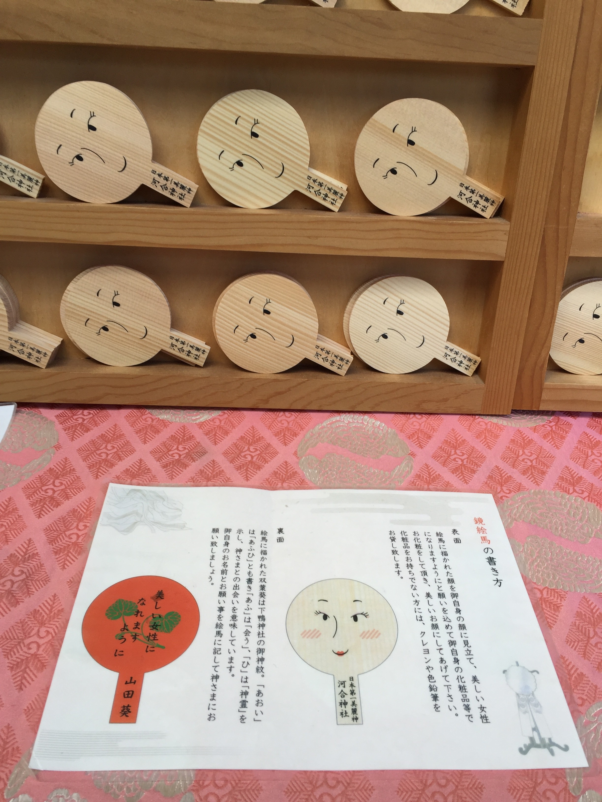 京都 下鴨神社と河合神社⛩に参拝に行きました。賀茂御祖神社(下鴨神社)は世界文化遺産に登録されている由緒ある神社です。以前から行きたいと思っていた神社です。下鴨神社の本殿に行く途中に、河合神社⛩があります。河合神社は日本第一美麗神であります。つまり女性にとっては、とても関心のある神様です。ですので我が家の女性陣は、鳥居⛩をくぐる時、一礼をするその頭をさげる角度がいつもよりも深かった様に思いました。おでこが膝についていました。願いをかける時、鏡絵馬に書かれた顔を自分の顔に見立て、美しい女性になれますようにと願いを込めて化粧します。その鏡絵馬に書いている時の様子は、ここ最近には見た事のない表情でした。私が話しかけられない雰囲気、どころか、私がそこにいる事も完全に忘れているかのように真剣そのものでした。殺気すら感じるようでした。でも、出来上がった鏡絵馬の絵は、意外や意外とてもアッサリしたものでした。「もっと、盛らんでもええの?」と聞くと、「うん、これで十分。」うちの女性陣はあまり欲が無い?ようです。その鏡絵馬を奉納し祈願しました。両手を合わせ目を閉じ拝む様は、背中から『巨人の星』の星飛雄馬の大リーグボールを投げる時の目もくらむ眩しいオーラ🌟がみなぎっていました。きっと、身も心も綺麗になれると思いました。
