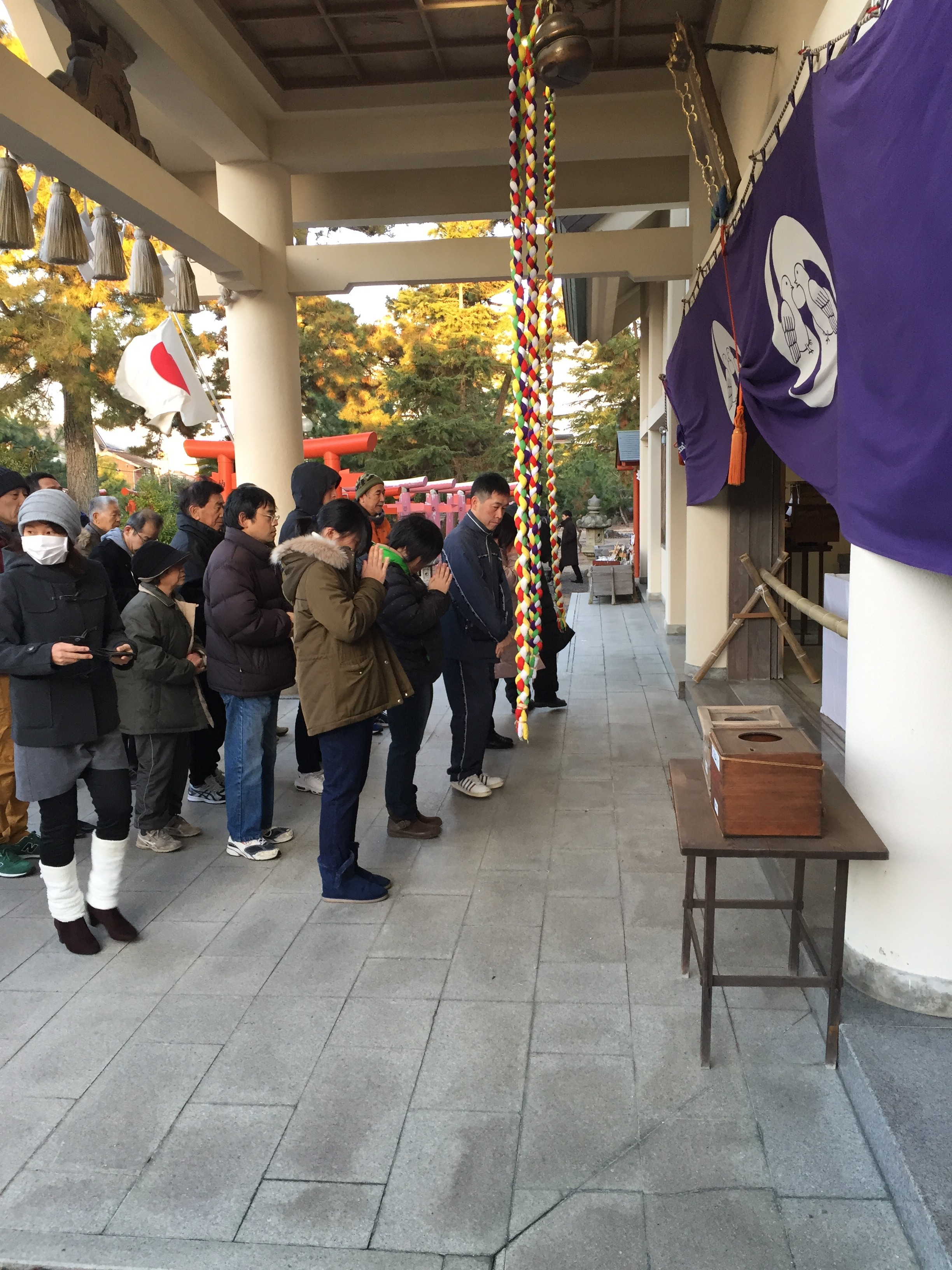 毎年恒例の年末行事の お千代保稲荷(お千代保さん)参りに行きました。参道には沢山の参拝客がいました。参道に並ぶお店をウインドショッピングしながら進みます。割れせんべい🍘、漬物、野菜🥦、などを覗きながら。御供えの油揚げと、ロウソクを購入してから参ります。御賽銭は、いつものように十分ご縁がありますようにと15円です。おじいちゃんが大学いもを土産に買ってくれます。そして、熊手をいつものお店で買います。それから、いよいよお目当ての串カツ屋さんでの立食いです。寒空の下でのアツアツの串カツは、めっちゃ美味しかったです。お正月🎍休みに、太ってしまう予感です(確実ですね!)。そして、お漬物を試食し、もちろん購入します。たくあん、ワサビ漬け、カクテキとご飯🍚が進むキケンなスーパーサブ達です。お正月休みのお笑いのテレビ📺のお供に割れせんべい🍘(ハッピーターン、おにぎり煎餅など)も買いました。もうダイエットなんて言葉はなくなりました。お正月が待ち遠しくもあります。