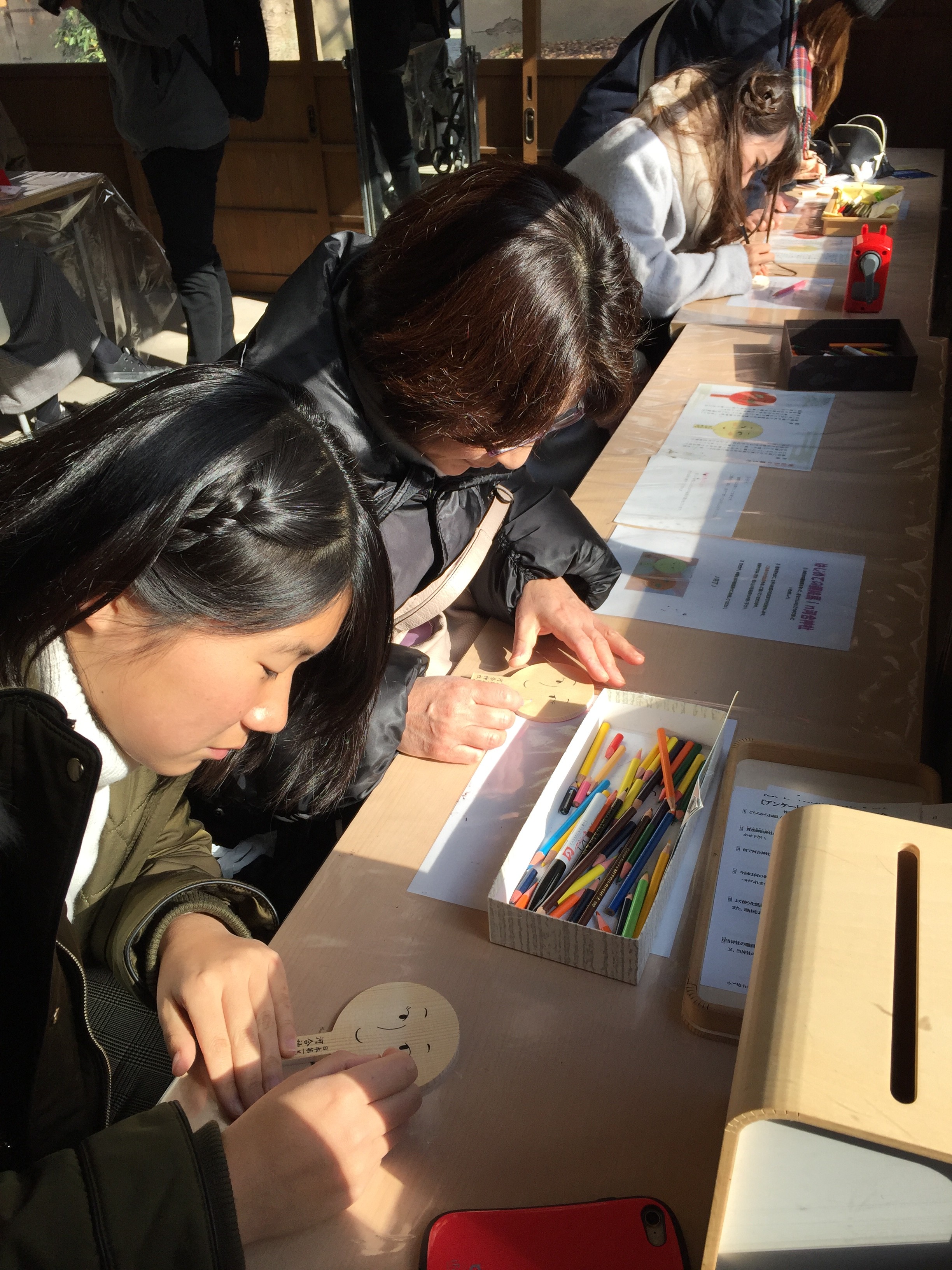 初日の出を拝んだ後、初詣二江島若宮神社を参拝しました。いつもの様に御賽銭の15円(十分ご縁があります様に)を納め、鈴紐を引き坪鈴を鳴らします。二礼二拍手一礼。願い事を沢山します。神様にとっては15円では割りが合わないくらいの沢山の願い事です。ボーイスカウト団のふるまいのぜんざいを食べました。寒い早朝の、甘くて美味しい暖かいぜんざいは初詣で神聖な気持ちになった心を、更に暖かくしてくれました。