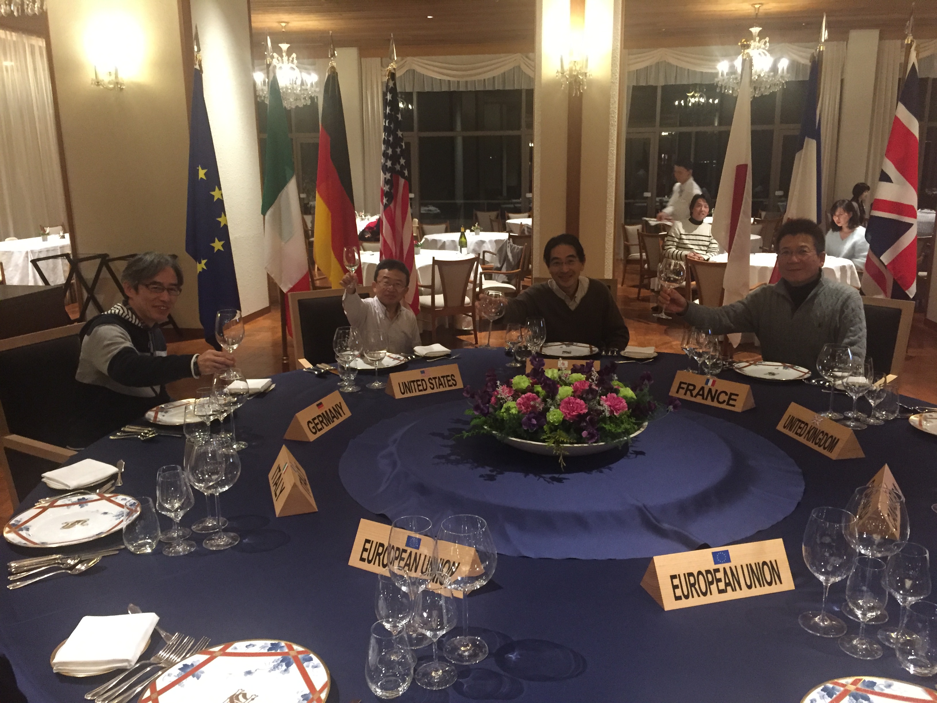 志摩観光ホテルにてG4 2017 伊勢志摩サミットが開催されました。ドイツ🇩🇪からD r.鈴木、アメリカ合衆国🇺🇸からD r.杉村、日本🇯🇵からD r.櫻井、フランス🇫🇷からD r.榮の4人の首脳により今後の世界情勢?について熱い討論会がありました。