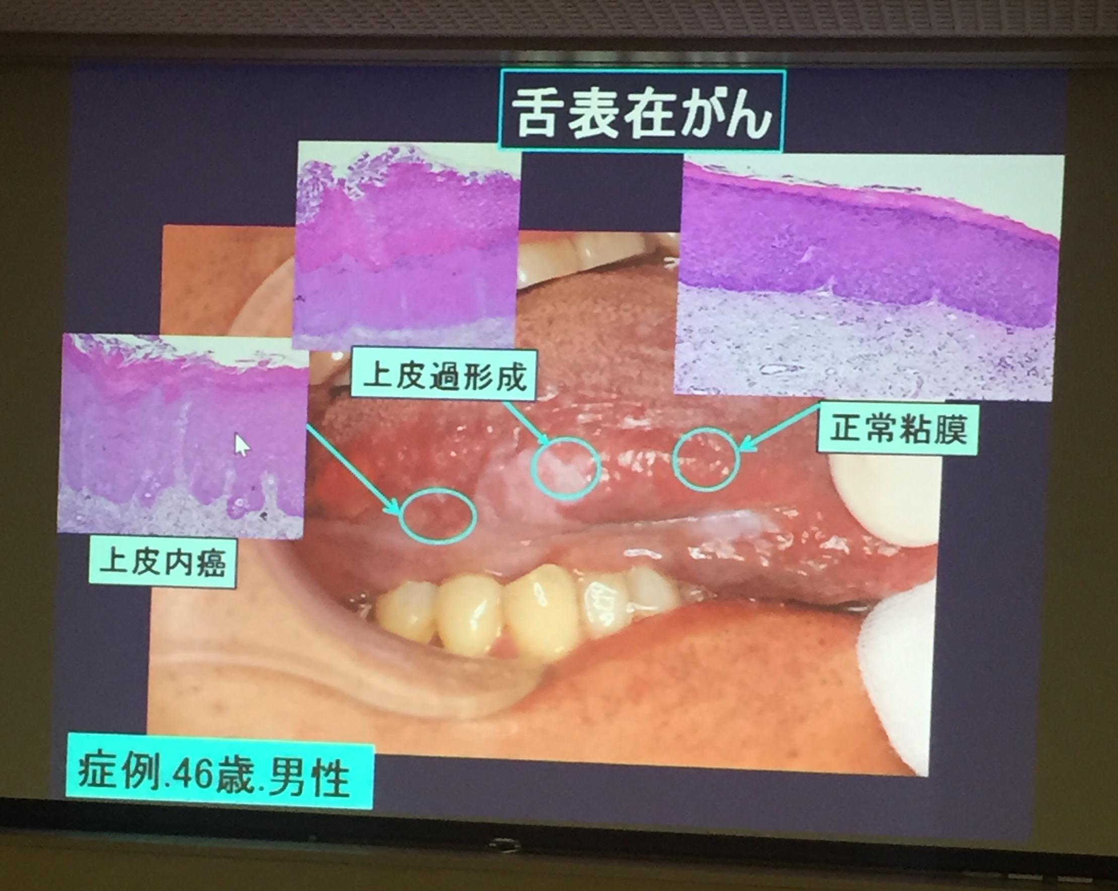 癌に対する基本的な講義と、臨床症例を交えた講演は、とても為になる内容でした。特に、上顎歯肉癌のオペ後の顎補綴(入れ歯で上顎を補う)では、24.5年前に当院で技工士さんと悩みながら額補綴した患者さんの事を思い出しました。