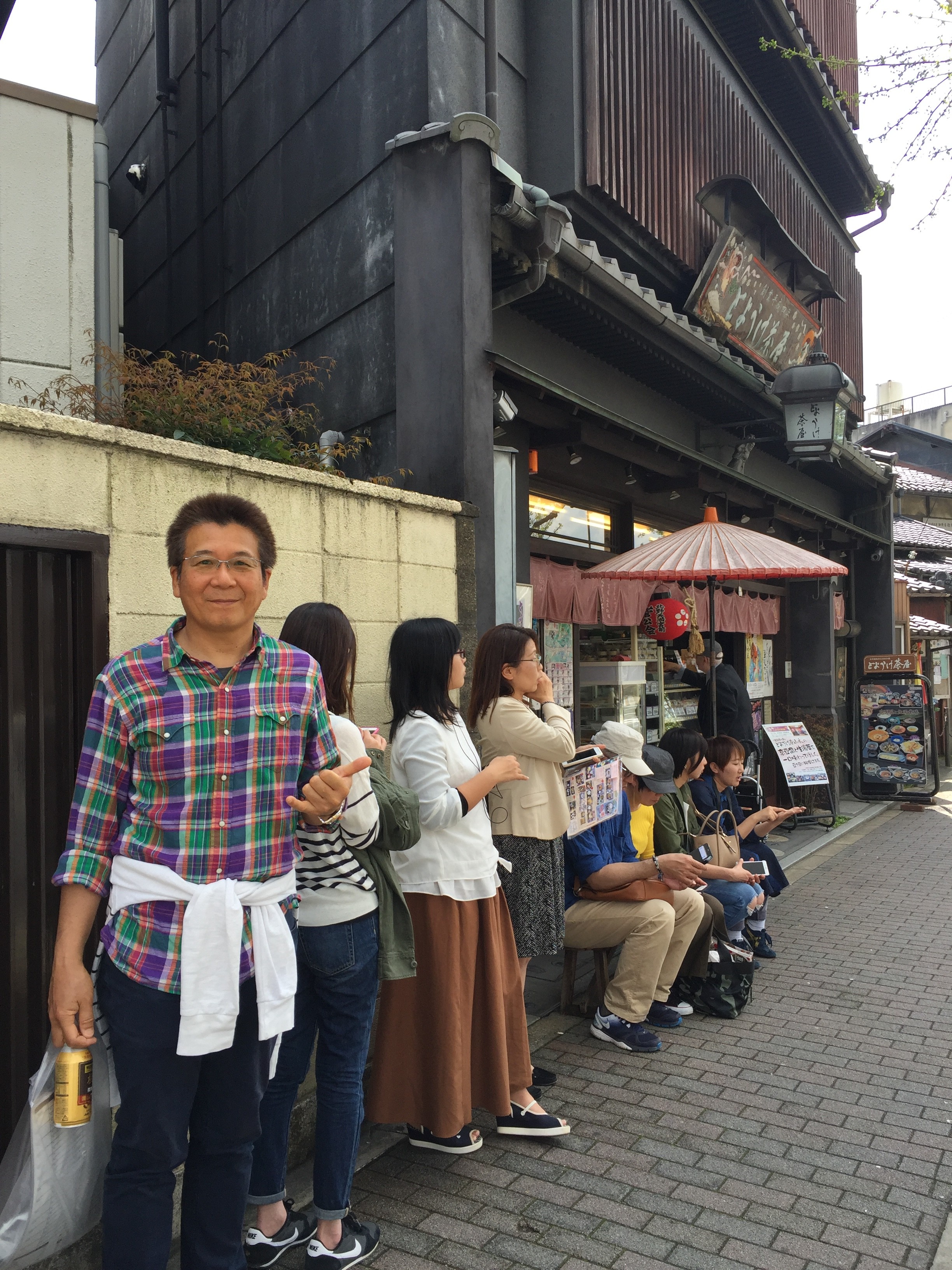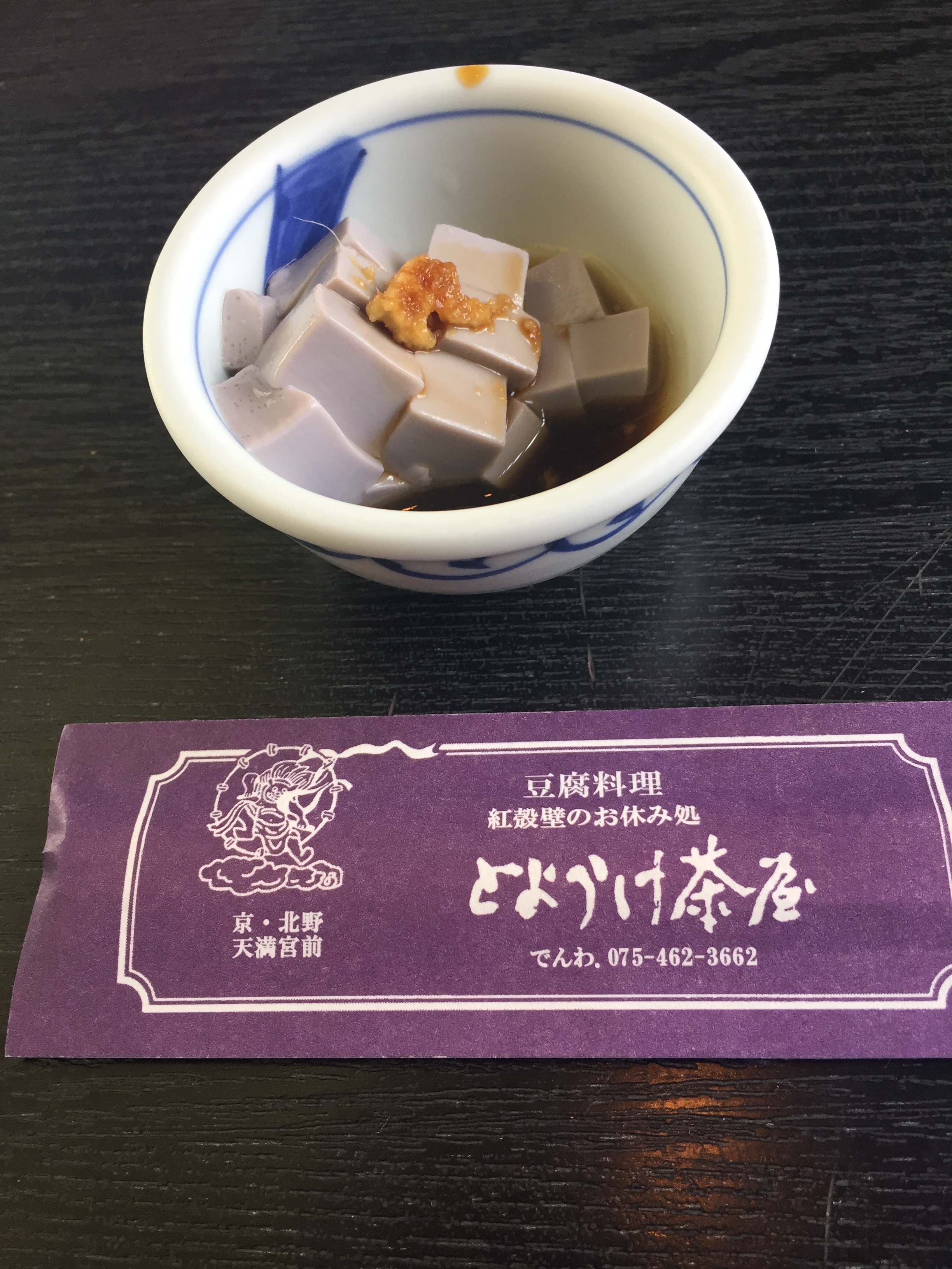 心がほんわかとした所で、お腹も空いてきたので以前から患者さんから聞いて気になっていた北野天満宮の前にある美味しい豆腐料理のお店、『とようけ茶屋』に歩いて行きました。行列が出来る店ですので期待に胸膨らませながら並びました。順番が来て、お目当ての湯葉丼を注文、食べました。期待通り上品な味で、とても美味しかったです。