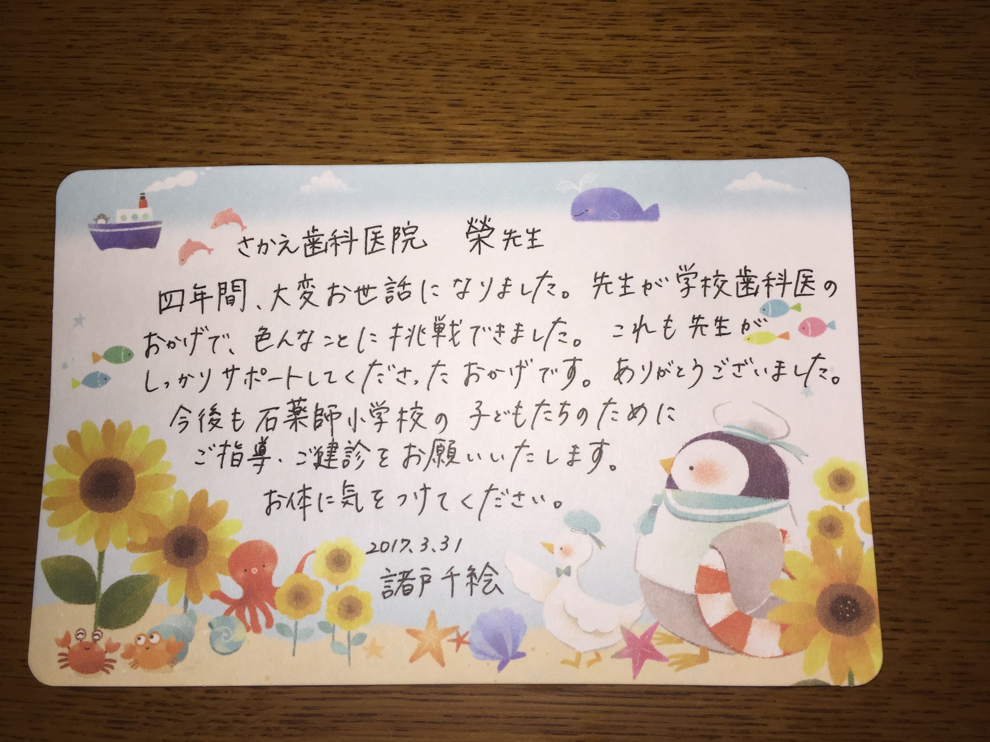 諸戸先生、新天地でも今までの情熱を持ち続けて子供達の為に頑張って下さいね。