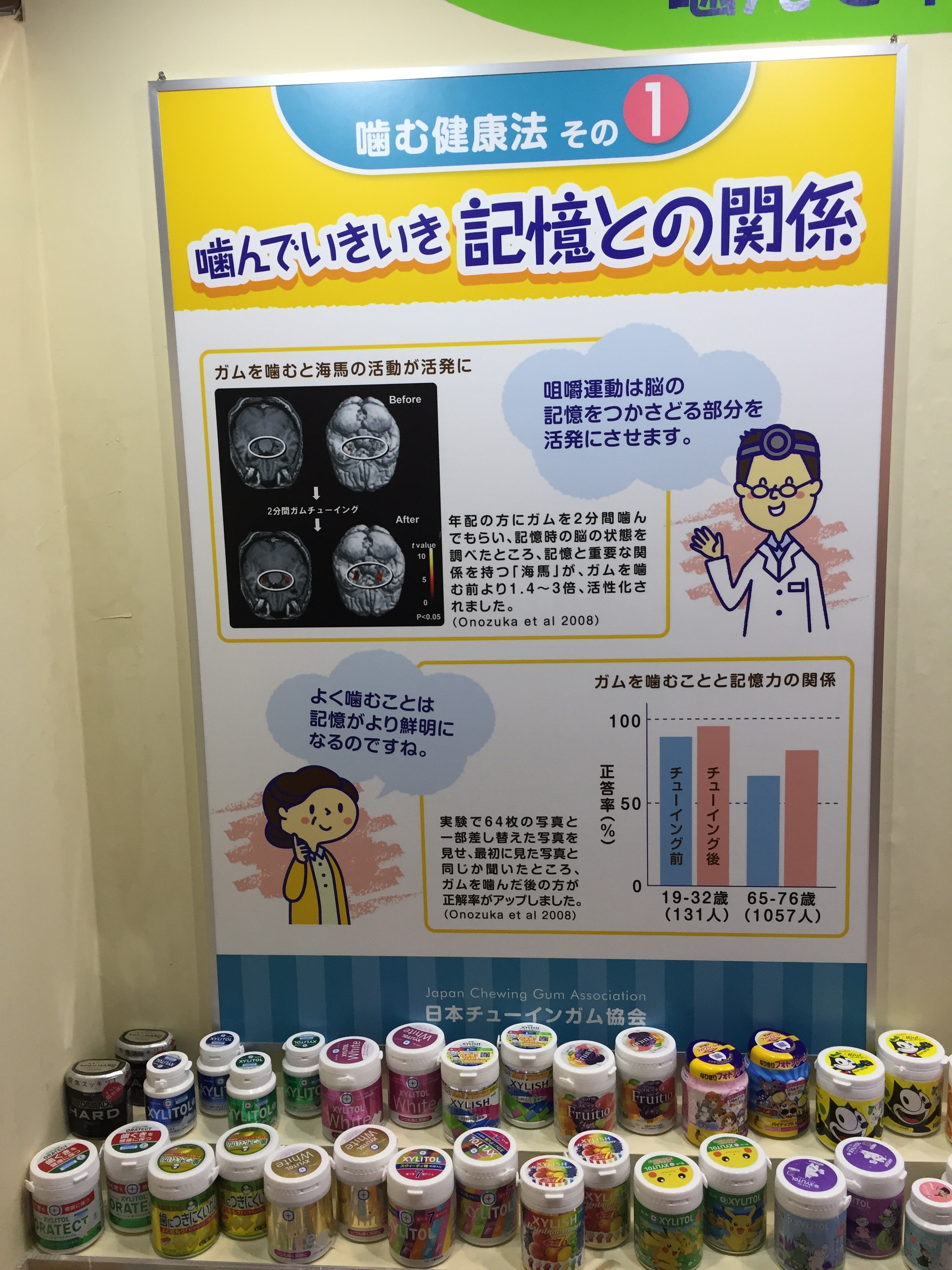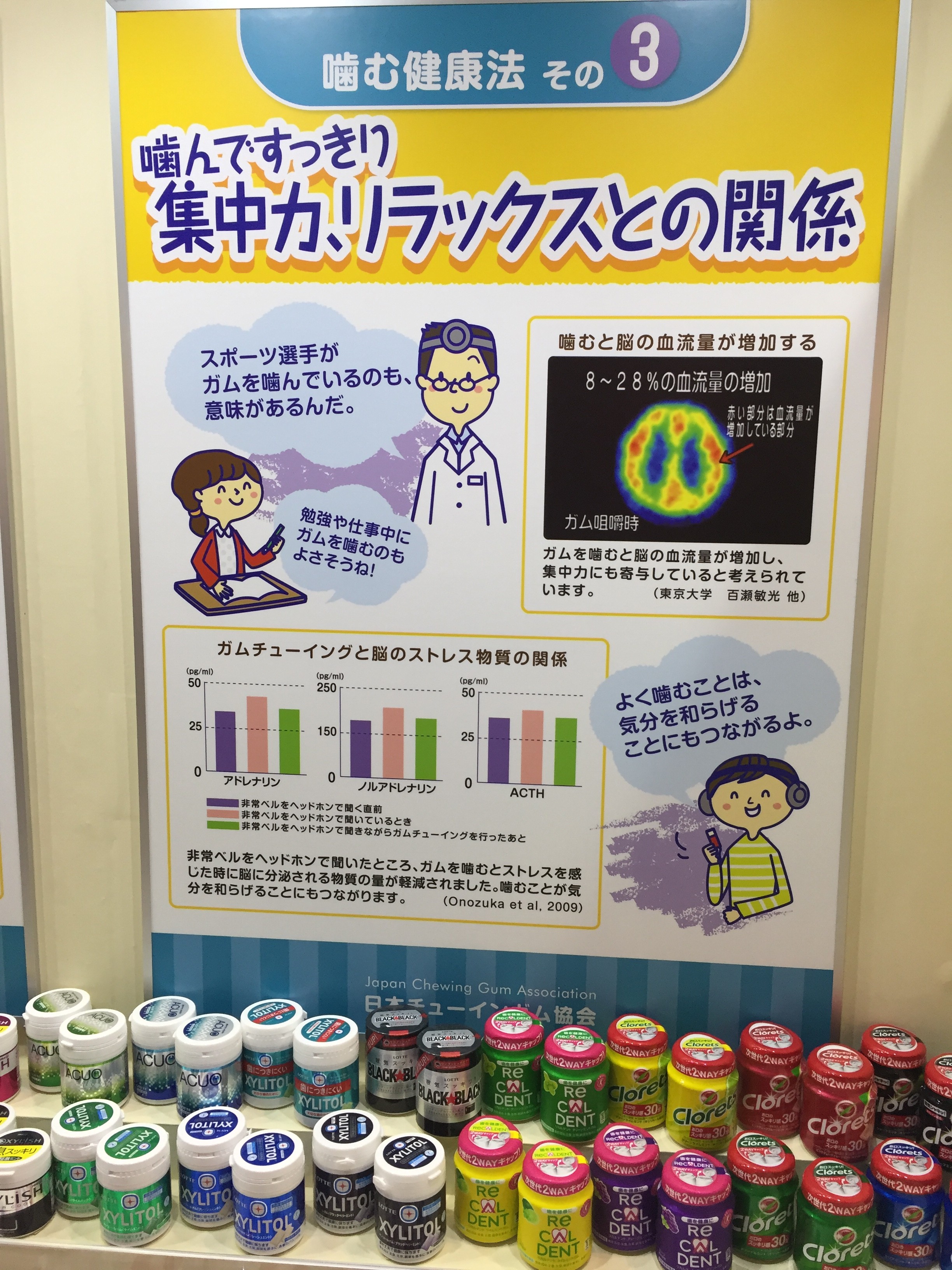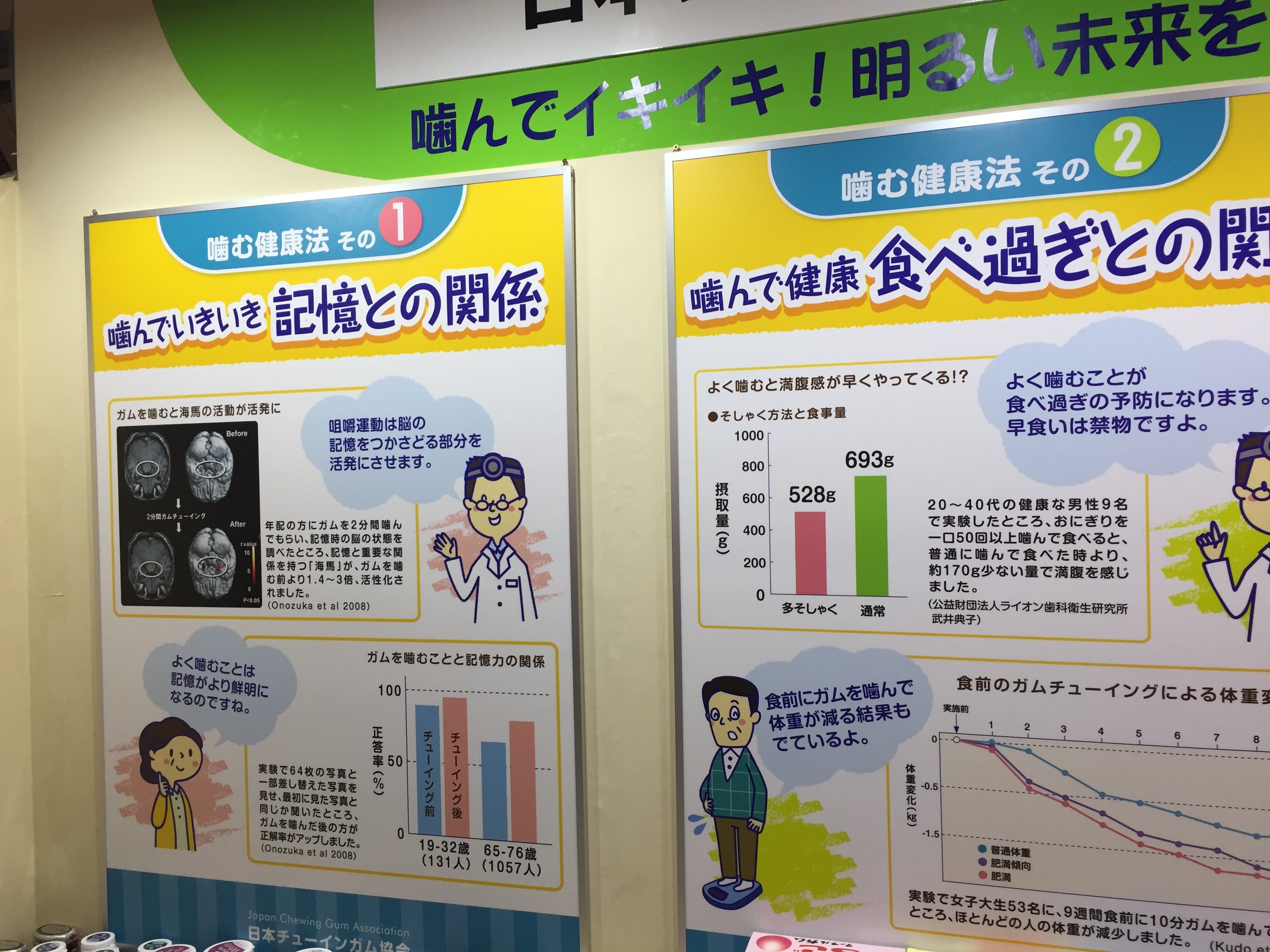 アリーナの中ではいろんなお菓子の展示がありました。中でもガムのコーナーには噛むことの大切さが説明してありました。