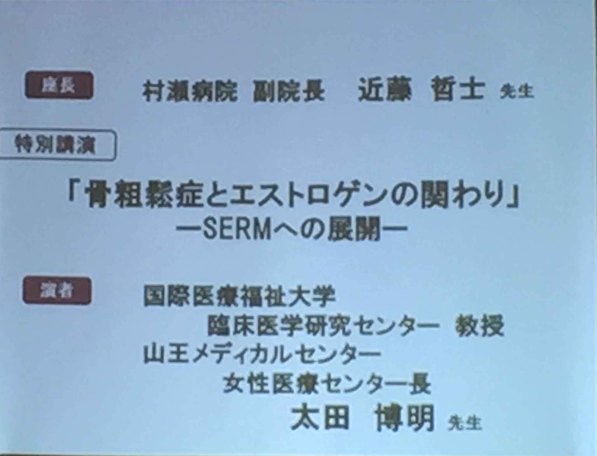 今日は、鈴鹿医師会主催の学術講演会に出席してきました。演題は「骨粗鬆症とエストロゲンの関わり-SERMへの展開-」です。講師は国際医療福祉大学臨床医学研究センター教授 太田博明先生でした。近年、高齢化に伴い骨粗鬆症の患者さんも多くなってきました。そして骨粗鬆症の薬として、ビスホスホネート製剤が使用されています。ビスホスホネート製剤を使用している患者さんは歯科治療をする時、注意しなければなりません。抜歯は特にです。そこで顎骨に対して安全な薬のSERM製剤が開発されました。その製剤のメカニズムを勉強しました。女性ホルモンのエストロゲンと骨粗鬆症とは密接な関係があります。興味深い事に、女性は閉経後平均的に55歳ぐらいで女性ホルモン、エストラジオールは少なくなり男性のそれと同量になり、それ以降は逆転し60歳では男性の半分になります。つまり女性ホルモン的には60歳では、おじさんの方が女の子っぽいのです。1時間半に渡る講義は、とてもためになるものでした。