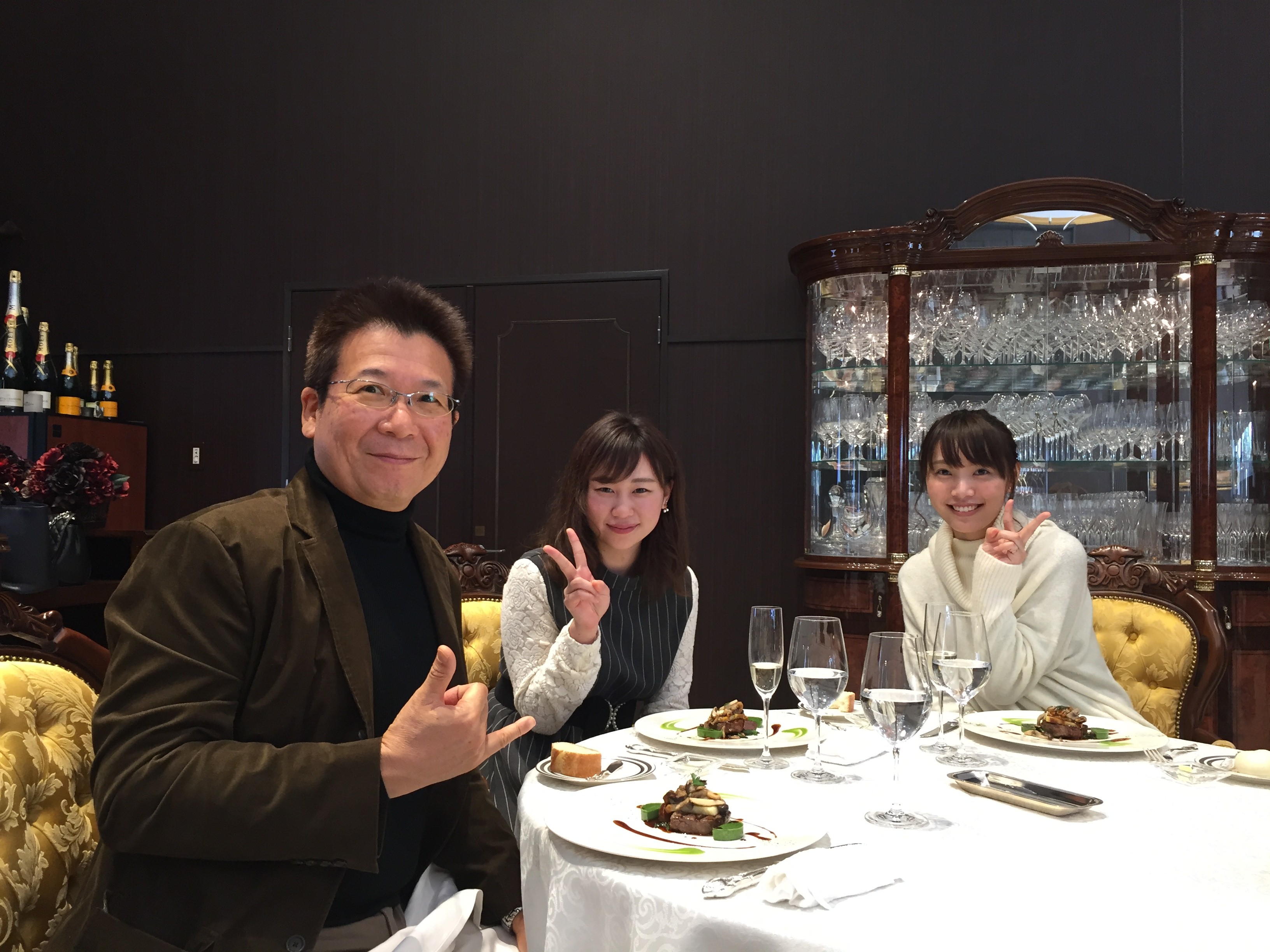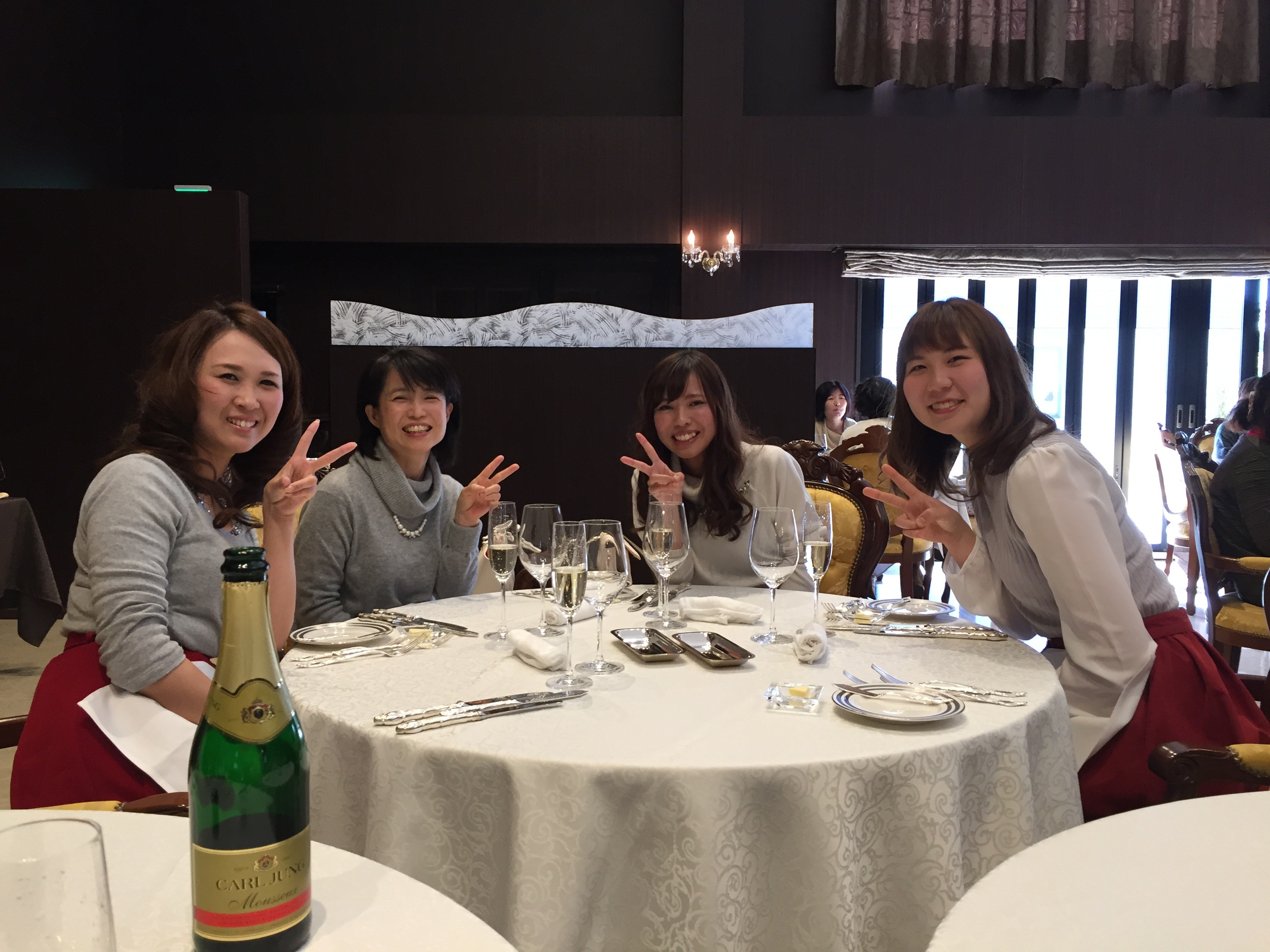 今年もあと少しになりました。少し早いのですが、さかえ歯科の忘年会をしました。今年はチョットだけお洒落にフレンチのコースです。場所は、最近では寿退社のスタッフのお祝い会で利用した津のパルムドールです。am11:30現地集合スタッフみんな、少しおめかしして綺麗でした。早速、席に着きノンアルコールのスパークリングワインで乾杯しました。カチン、カチンとスタッフみんなとグラスを合わせると、グラスの中の泡が綺麗でした。料理が出てくるまでの間のワクワク感があるのですが、ドレスコードのせいか皆んな緊張気味でした。目の前に給仕された料理の紹介をウエイターの方にしてもらい、まず目で楽しみ、香りを感じ、そして食して感動します。食べている時は皆、無口でした。出る言葉といえば、「美味しいね!」ぐらいでした。次の料理がくるまでの間、暫し歓談。料理が到着。サイレント・・・食べるのに夢中!歓談。の繰り返しでした。美味しそうに食べてるスタッフを見てると、とても嬉しく思えました。スタッフみんなが、頑張ってくれるから円滑な仕事が出来ます。とても感謝しています。楽しい時間は早く過ぎてしまう様に感じます。デザートのケーキとハーブティーもとても美味しかったです。嫁さんは、もう一回始めからしたいと、言いました。コースを全て食し、それからワイワイと歓談している頃には、来店した時の緊張感はありませんでした。ホントに、美味しかったし、喜んでもらえて、良かったです。スタッフの皆さん、時に仕事で大変な事があるかもしれませんが、さかえ歯科の患者さんの為に、頑張ってください。そして、みんなでまたワイワイ美味しいものを食べようね。
