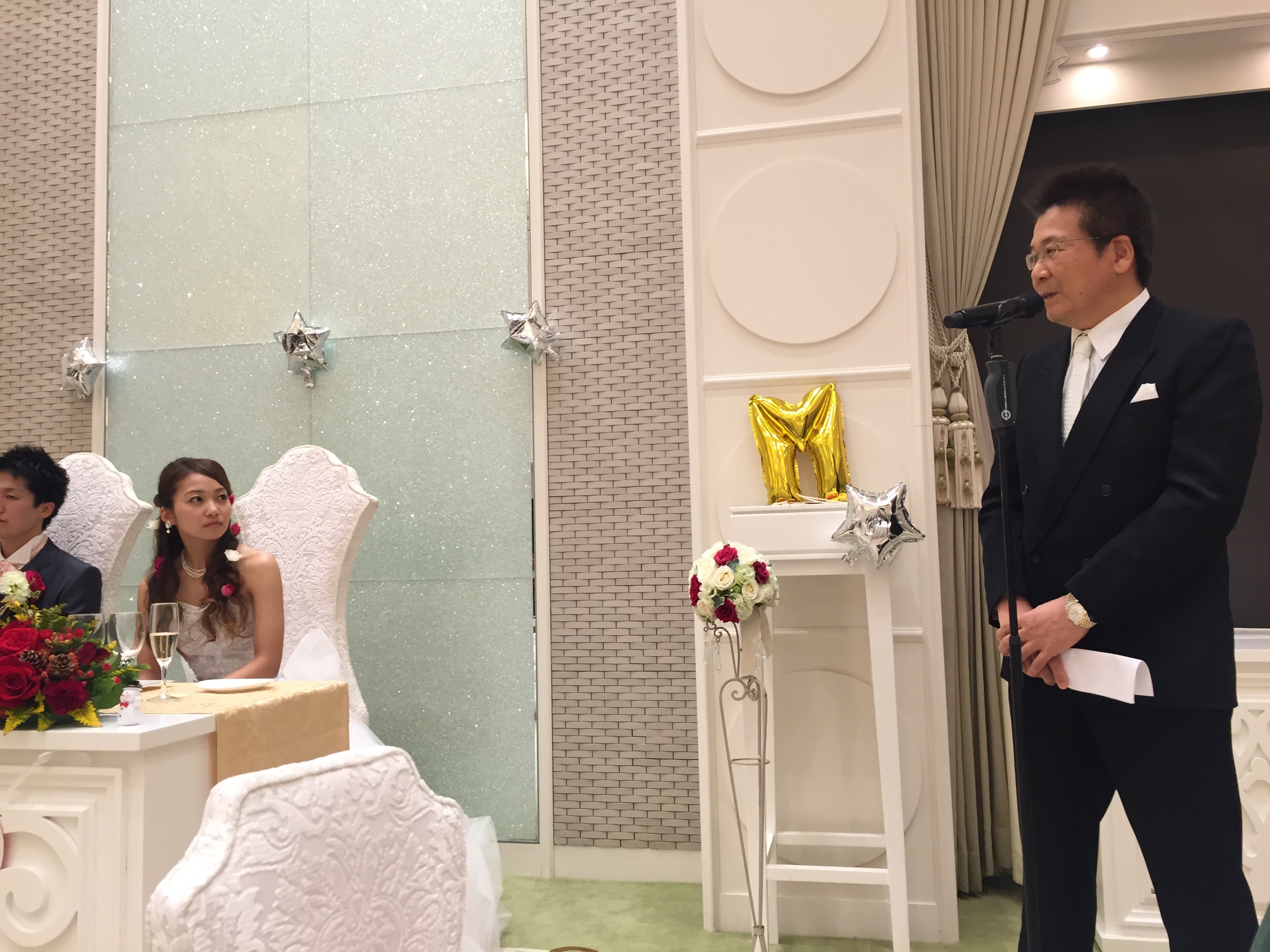 披露宴では、スピーチをさせていただきましたが、普段話し慣れている私ですが失礼があってはいけないと思いガチガチのかなり緊張でした。スピーチの最後の言葉に、新郎にお願いをしました。「彼女はとってもいい子です。ですから、絶対に幸せにしてあげて下さい。お願いします。」と。花嫁姿の彼女は終始、笑顔でとてもハートフルな結婚式でした。