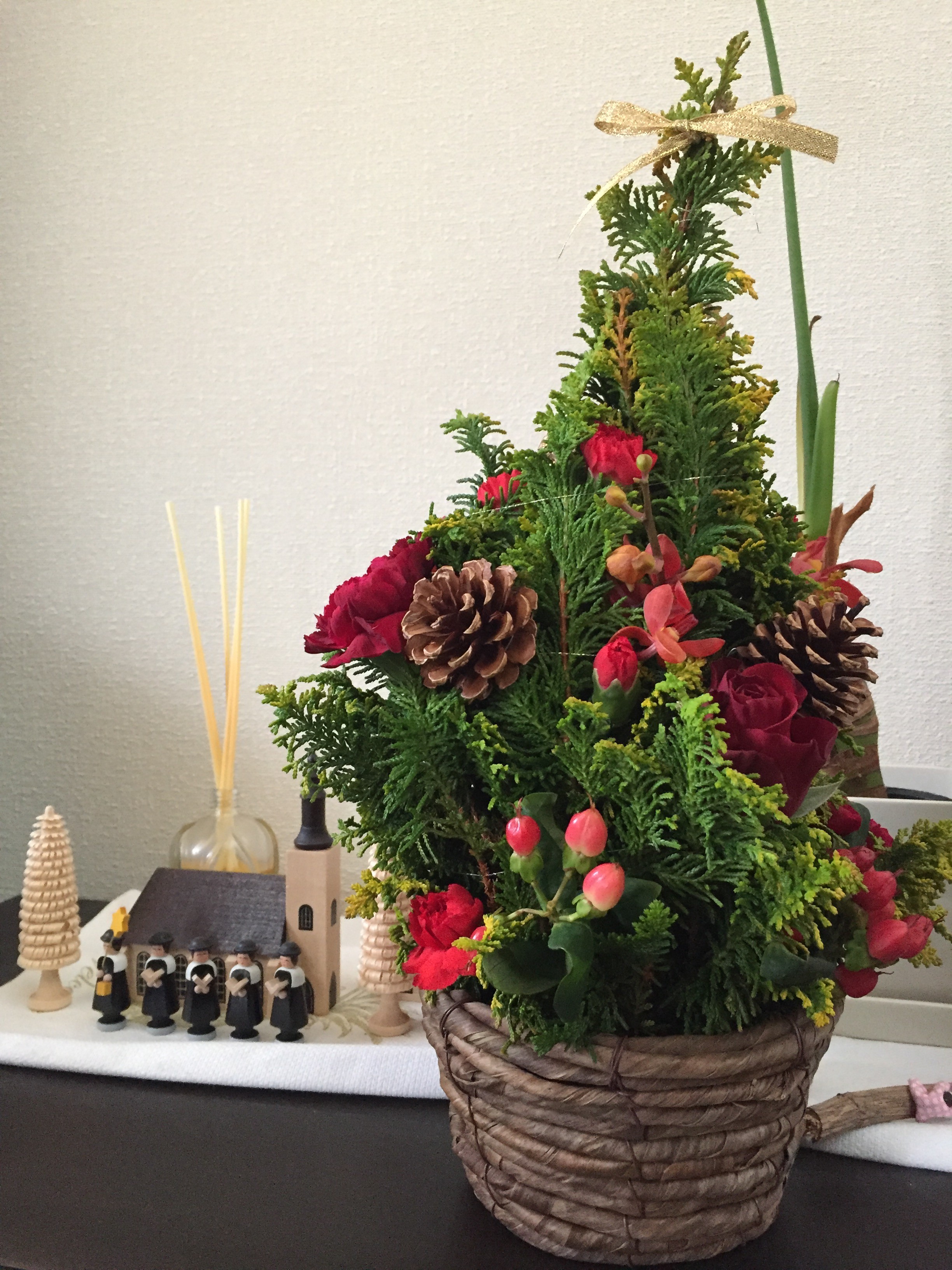 メリークリスマス!先日、スタッフの結婚式で頂いた花飾りを玄関に飾りました。とても綺麗です。