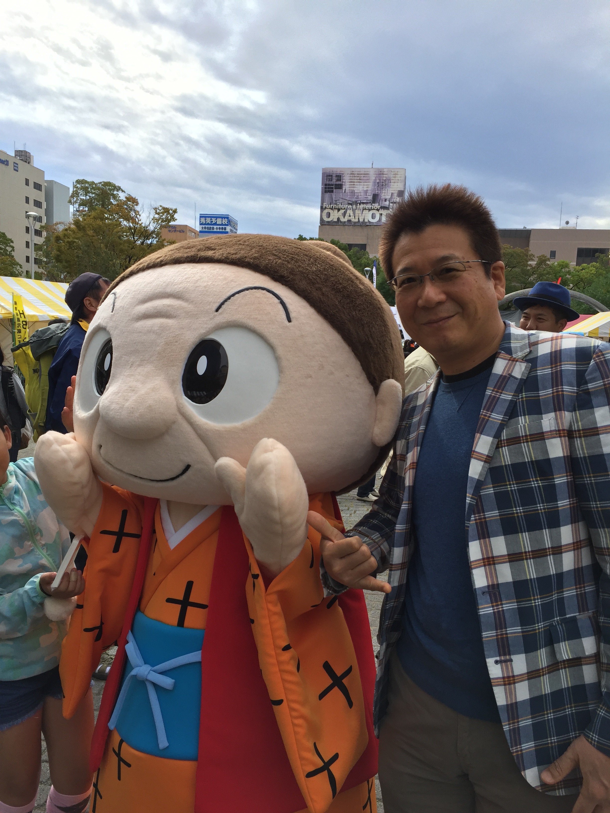 今日はFM三重のイベントで四日市の博物館の前の広場へ行って来ました。少し肌寒い日でしたが天気の良い日でした。まず四日市のゆるキャラ、こ入道くんに会い記念撮影、次に茶柱タツさんを捕まえ、ハイポーズ!FM三重のラジオ魂という番組のパーソナリティのメルヘン堂の広瀬隆さんにラジオの投稿の、お世話になってる事を話し、ハイポーズ!ミニクーパーに乗り込み嫁さんも、ハイポーズ!娘の中3の美穂ちゃんもBMWに乗り込みハイポーズ!ハンバーガーを食べながら、イベント会場に流れるゴスペル隊の生歌を聴きながらゆったりした時間を過ごしました。そして、近鉄デパートの催事場で北海道大物産展が催されていたので、試食を楽しみお腹を満たしました。ちゃんと、イカの塩辛とピザとマロンアイスを買いましたよ。