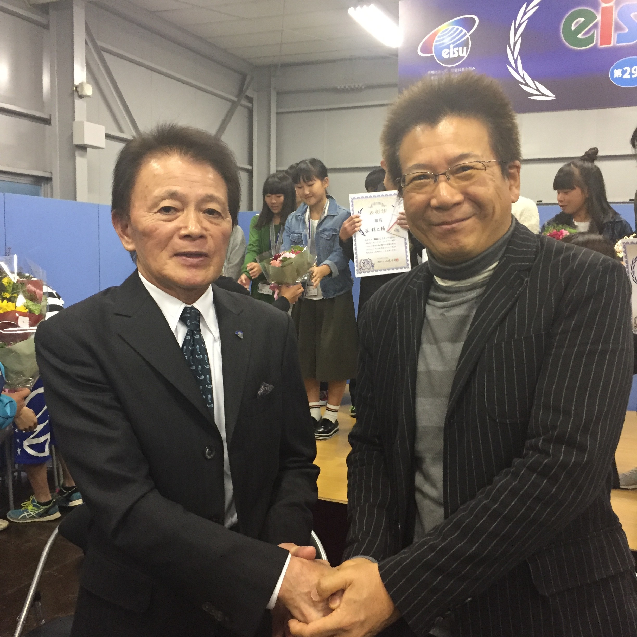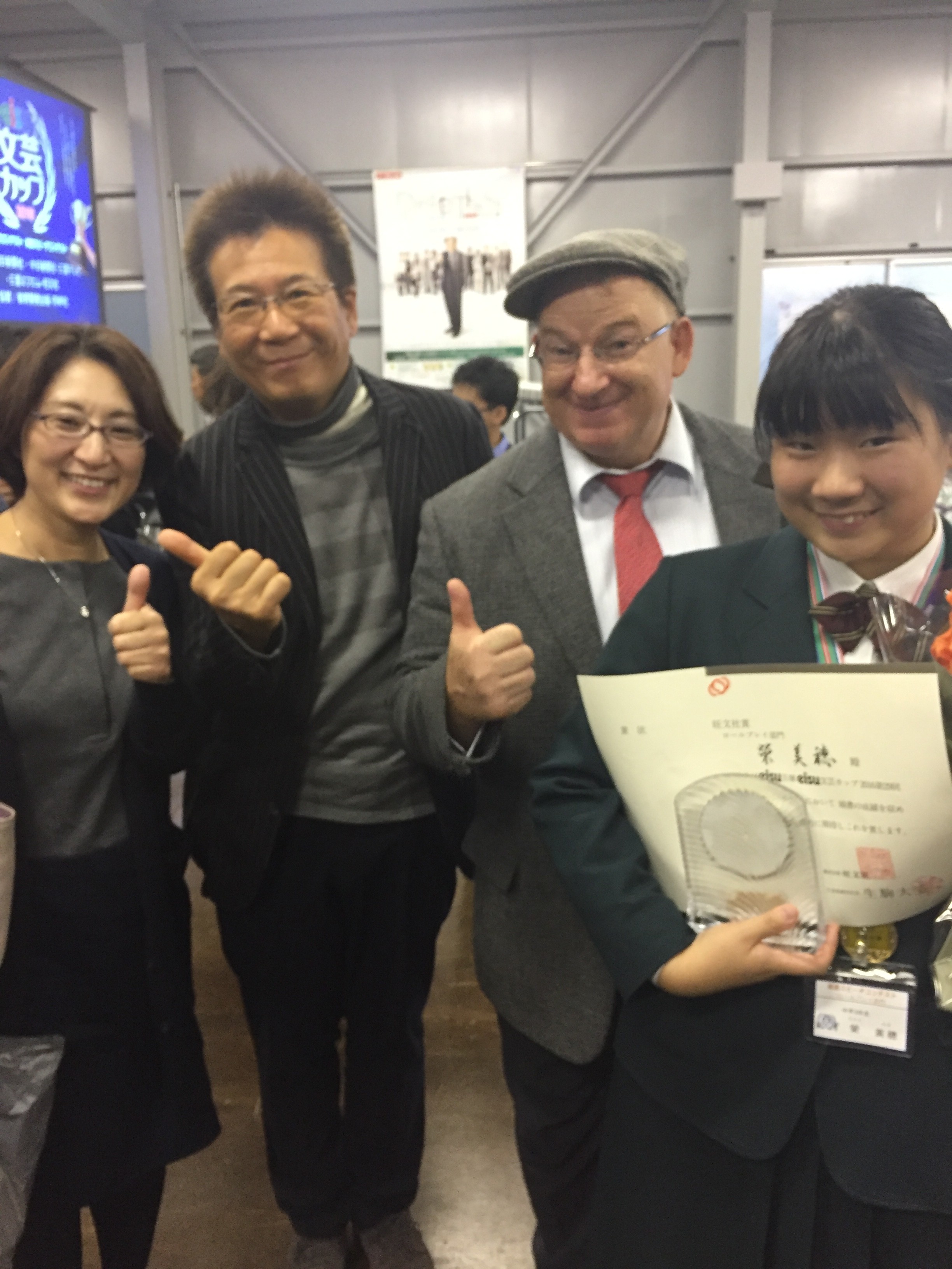 56年の年月を重ねると、”繋がり”と言う言葉の不思議を時々感じる事があります。今日は、娘がお世話になっている塾’eisu’のスピーチコンテストの応援に湯の山温泉の、eisuの保養所に行ってきました。私も小5から中3まで英語でお世話になってました。当時、塾生の数も少なく小5の頃は、私の記憶では二十人位だったと思います。三日市町の先生宅でクリスマス会をした事を覚えています。山本千秋先生ご夫妻の授業を受けていました。今、娘がお世話になっているのを思うと歴史を感じるのと、千秋先生 今ではeisuのCEOで偉くなったなぁと思いました。娘のスピーチコンテストもドキドキながら無事終わり表彰式の後に、デイビッド セインさんと記念撮影し、千秋先生を捕まえて当時のお世話になった事を伝えると、クリスマス会の事を覚えてるし、御挨拶かも知れませんが私の事も何となく覚えててくれてる、との事でした。感動でした。私も、来院してくれる子供たちに、良い記憶に残る先生にならなければと改めて思いました。少し肌寒い御在所のかぜを感じ、子供の頃の話しを娘に話しながら帰路につきました。