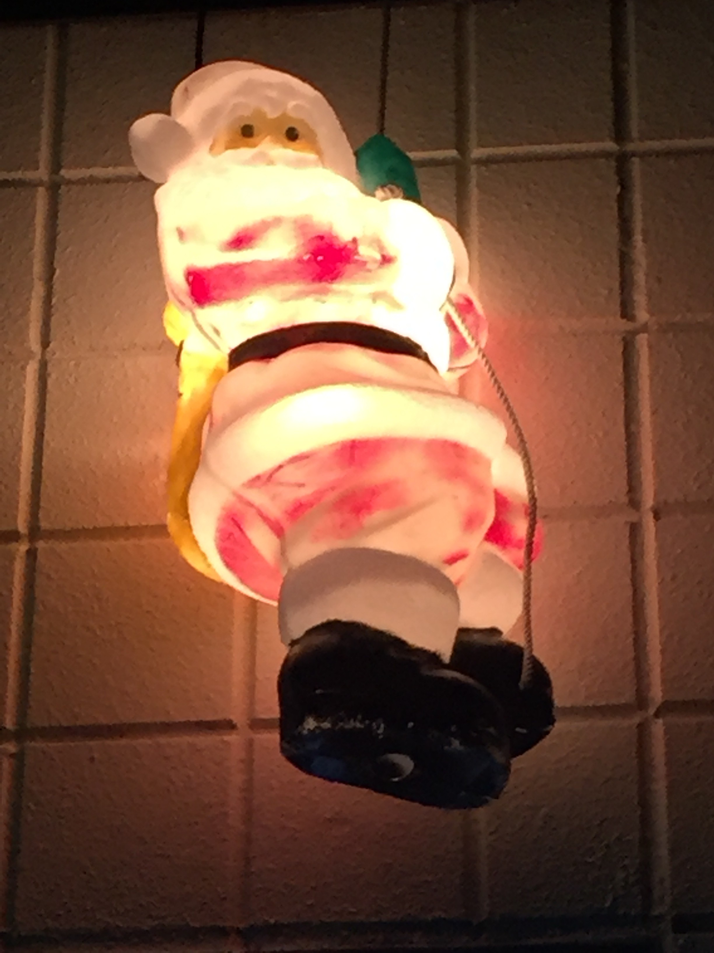 今日は暖かく屋根の上に登っていても、辛くはありませんでしたが、高い所が苦手な私にとっては恐怖との戦いでした。飾り付けも完了し夕暮れになって、電飾に灯りが灯ると細やかながら達成感を感じました。