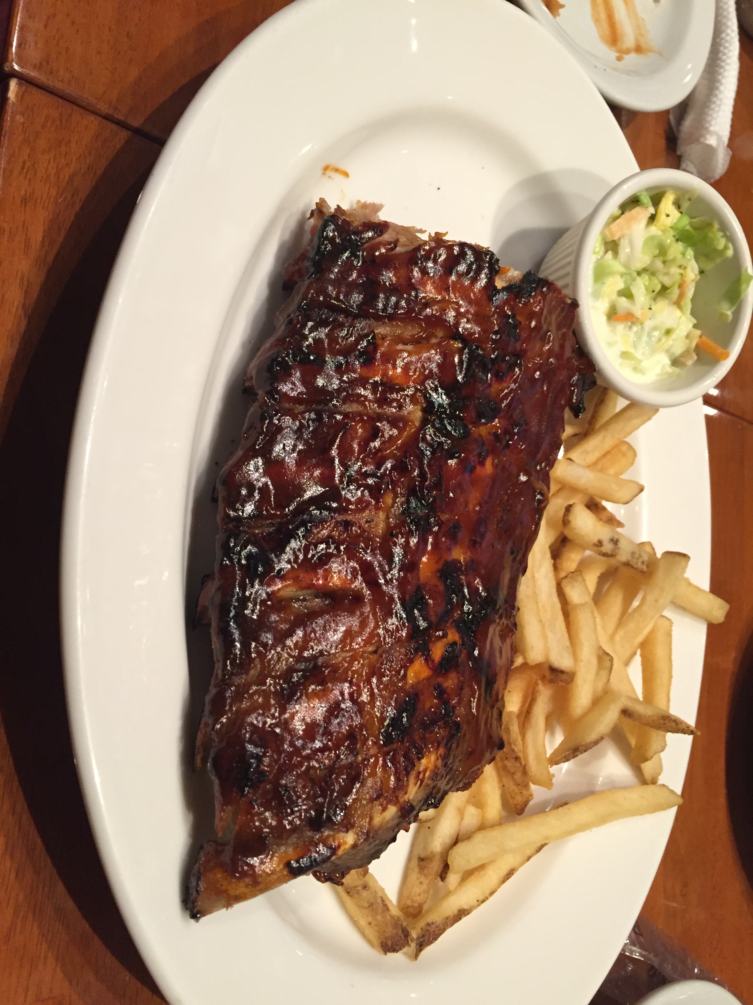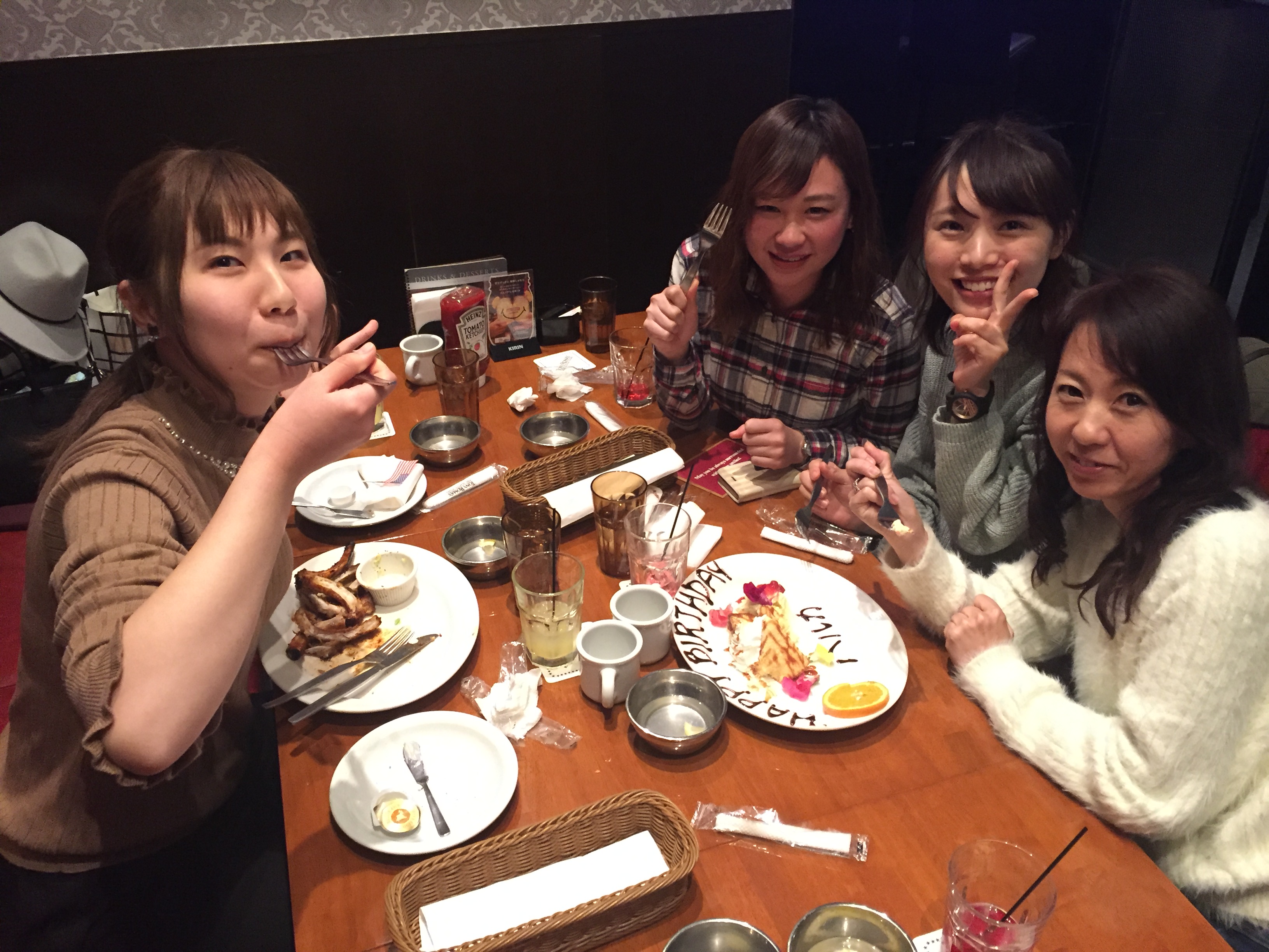pm3:00予約してあったスペアリブの店’トニーローマ’に入りました。ハワイ、グアム、サイパンにもあるとても美味しいお店です。沢山歩いた(8km位)ので、皆んなのお腹はペコペコでした。予約席に案内され、メニューを見せてもらいました。食べるものは、心の中では既に決まっていました。もちろん、スペアリブです。リブランチを注文しました。食事が運ばれてくるまで、私のトニーローマあるあるを熱く語りました。熱く語ってるうちに、熱いリブ登場です。