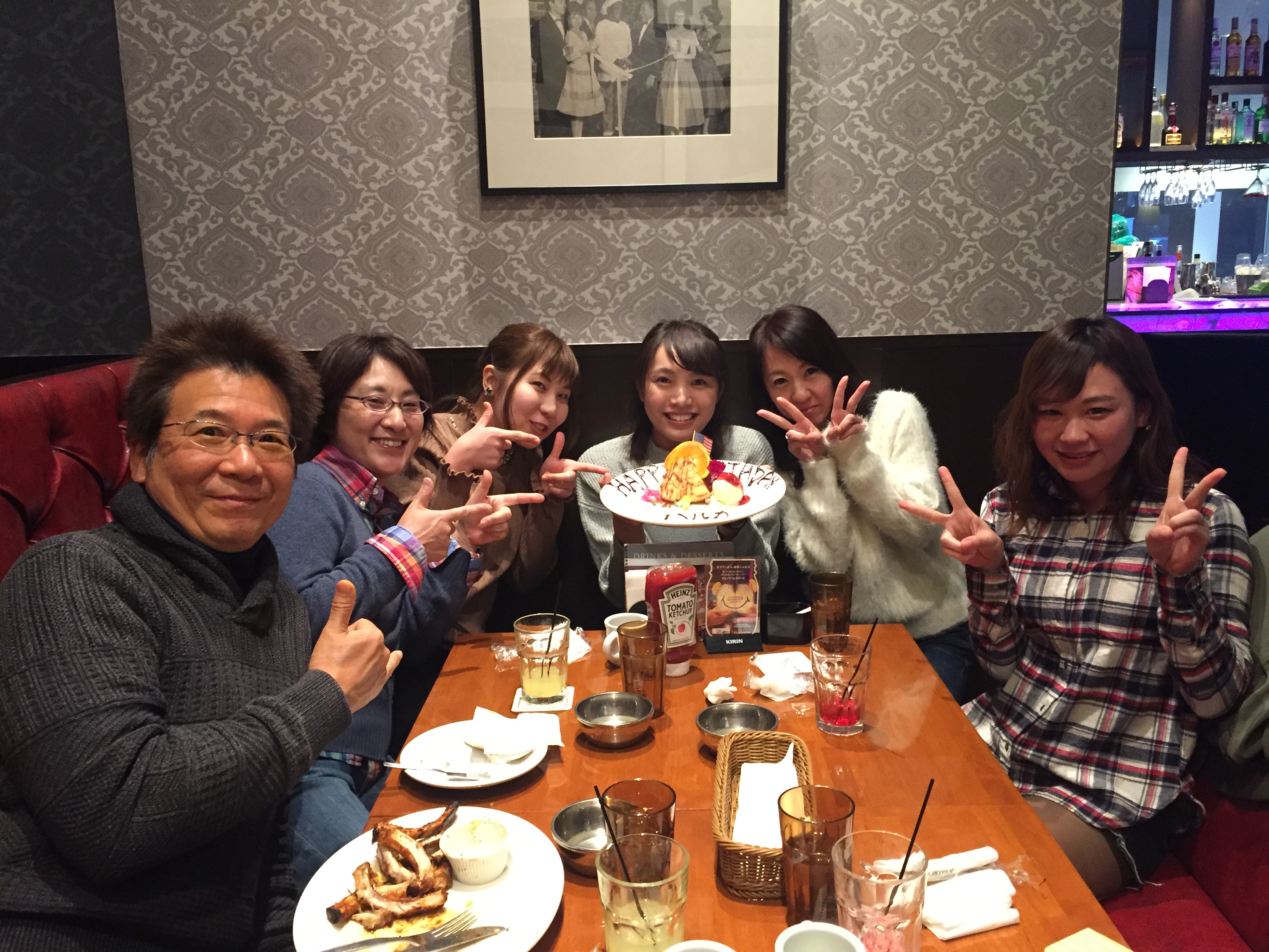 それから食べるのですが、初めは上品にフォークとナイフを使うのですが、美味しいので、もう手づかみです。至福の時、夢中で食べているときはみんなサイレントです。あまりにもの静かさに、おかしくなりました。指さきが汚れてきたので、フィンガーボールが出て来たのですが、さすがに飲んでしまう人はいませんでした。今月誕生日のスタッフにバースデイケーキをサプライズで🍰用意しました。お誕生日おめでとう㊗️🎊🎉