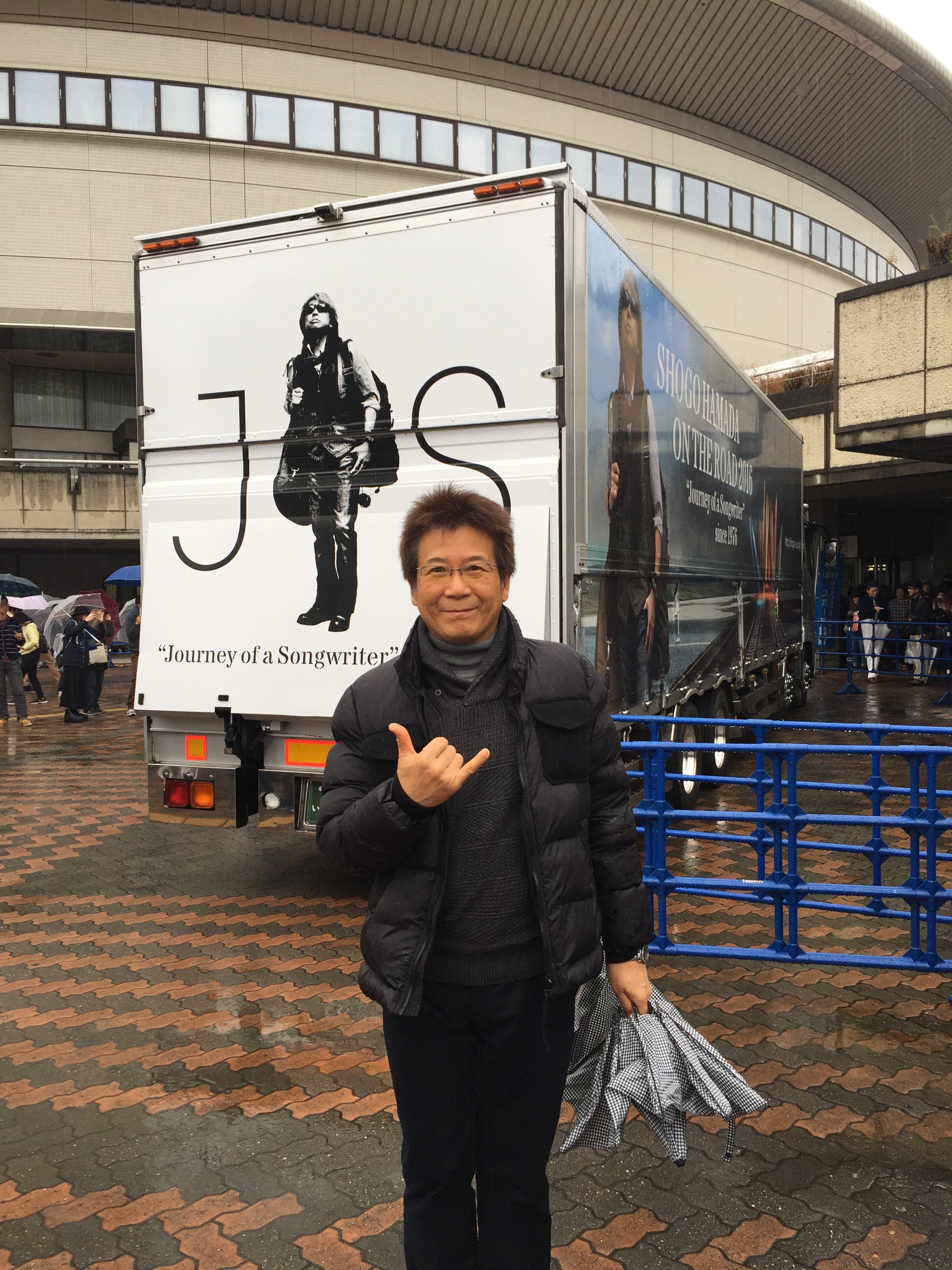 一年ぶりに浜田省吾のライブに行ってきました。今回は、名古屋の日本ガイシホール。我々世代では、レインボーホールです。午前中は、市場の朝市に行ってからのライブに参加です。昨年はセンチュリーホールで前から二列目という『神ってる』座席だったので浜省が直ぐそこで、歌っていたので少しの期待を込めて参加でした。名古屋はあいにくの雨模様でしたがツアートレーラーの前での写真撮影は、親切なファンの方に協力してもらい素敵な写真が撮れました。ライブが始まるまでの間、グッズを買いました。ワクワクして開場を待ちました。座席は入場エントリーの時点で判るシステムでしたが、残念にも2階席でした。でも参加出来ただけでもラッキーなので、完全燃焼するのみです。pm5:00ライブ開始です。オープニングはデビュー曲の路地裏の少年でした。35年前にライブに行き、その時は大学の近くの市民ホールでチケットも余っている状態でした。当時、こんなにビッグになるとは思ってもいませんでした。でも、応援し続けて良かった。路地裏の少年を聴く度に思います。会場に来てる年齢層は広く一番多かった年齢は50代でした。少し安心しました。ライブ中のMCでは、世界平和について考えようとみんなに語りかけ、今、ここで音楽が楽しめる事がいかに幸せであるかを感じました。3時間半にもわたる熱い時間が、あっという間に過ぎ、手のひらは赤くなり、歌い過ぎてノドはかれていました。懐かしい曲には、その当時が思い出され目頭が熱くなりました。時に涙が溢れました。歳のせいでしょうか?ライブの感動を胸に刻み明日へのファイトとすべく帰路につきました。
