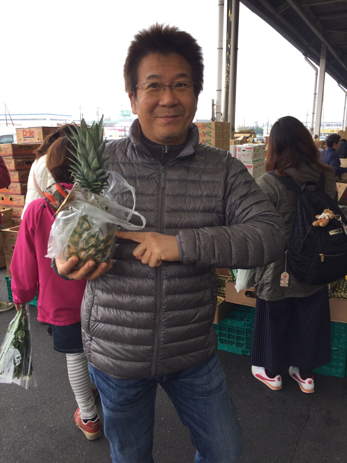 今年もやって来ました。年に一度、開催される北勢市場のイベント”市場の朝市”。毎年、参戦しているのですが、去年、前日あまりにも盛り上がり過ぎて遠足前の小学生の様に眠れず、寝坊してしまいオープンの7:00に間に合わず、現場に到着した時は7:50でした。今年は、寝坊しない様に前日am1:00には完全に就寝。am7:00ジャストに到着。まず、患者さんの牧野商店さんでマグロとブリの刺身を購入。牧野さんの所のお魚は、とっても美味しいのです。次に、ワンコイン500円でシャケのカマの詰め放題に参戦。ほぼ一番のスタートだったので、とても良いカマが沢山ありました。レジ袋を渡され、レジ袋の耐久性と、如何に限られたスペースにテトリスの要領で収めていくか、頭脳戦です。今年は冷静沈着に対応することが出来、レジ袋は満杯になり、かつ、上手く盛り上げたシャケのカマはまるで、カキ氷の様でした。まだ、乗せられて思ったのですが、いつも無理をし過ぎて悲惨な事になるケースが多々あるので、その経験値を生かし無理をしないようにしました。いっぱいに積み上げたカマを見たよそのおじいちゃんは「あんた、上手に詰めたなぁ。しばらく、カマだけで生きてけるなぁ。」と、大絶賛してくれました。納得!嫁さんはハマグリの詰め放題に参戦。紳士的ながらも、十分な結果に納得!クラムチャウダーになる予定です。次は、am10:00に開催される野菜の詰め放題に参戦すべく、am9:00から順番待ちしました。待っている間、去年の反省をしました。渡されたレジ袋を伸ばし過ぎて、穴があいてしまい、ジャガイモが溢れはじめ、穴から亀裂が広がり袋から、ビニールシートに変わりつつあるものには、もう収容能力はもう無く、我がお腹と上腕で抱えるしかなかったのです。優しい八百屋のおじさんはほぼ商品がなくなっている私の懐にお情けのバナナを乗せてくれました。そんなことがない様に今年は、あまり欲張らないと心に決めました。am10:00野菜詰め放題スタート。まずジャガイモを詰め、一個単価が高いと思われるリンゴ、今、高いキャベツ、大好きな柿、最後にバナナを乗せてゴール。戦績にそこそこ納得なのですが、もう少しいけたように思えました。あっ、それと私、リンゴあまり好きではありませんでした。嫁さんも沢山詰めていました。今回のイベントには、私達のほかに両親と徳島のおばさんと、おじさんも参加したので帰りの車の荷台は今からキャンプにでも行くのか?と思うくらいになっていました。毎年、榮家はこのイベントを楽しみにしています。市場関係の方々がんばって下さい。ウチの冷蔵庫の中は、パンパンやでー。
