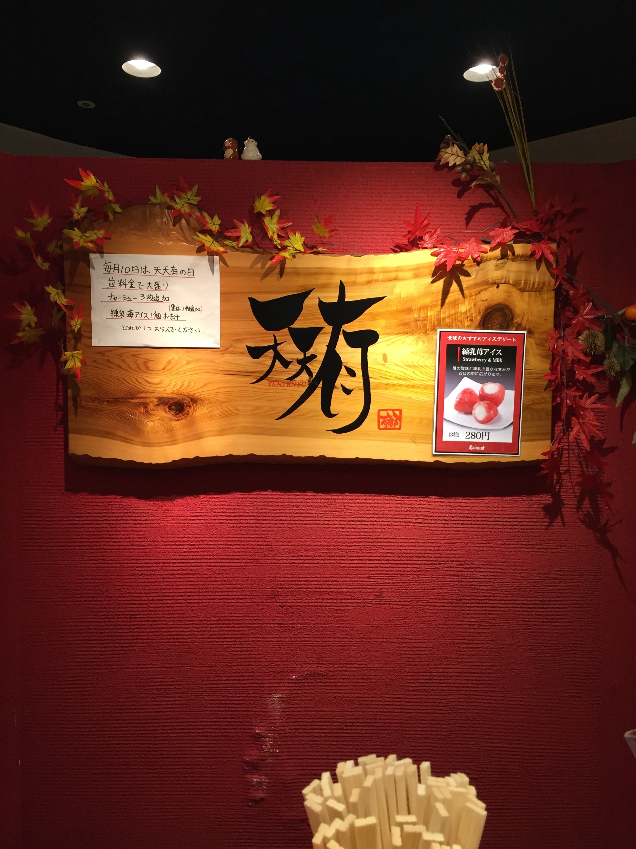 今日は、嫁さんと京都の娘の下宿の掃除に行ってきました。そして以前から気になっていた四条にあるcocon karasumaビルにある行列の出来るラーメン屋さん”天天有"に行きました。鶏ガラと野菜をじっくり煮込んだスープの中華そばの店です。昼食の時間をずらして行ったので、比較的すぐに順番がまわってきました。背脂入りのこってりラーメンを注文しました。ラーメンが出てくるまでの間、榮家の期待は膨らみ、臨時委員会が開かれるのです。どうか期待を裏切らないでの気持ちを込めて。「お待ちどうさま。」ラーメン登場。ルックス良し。香り良し。細麺で私好みの味でとても美味しかったです。スープも全て飲み干しドンブリを舐めたいくらいでした。勝手に合格です。また来たいです。