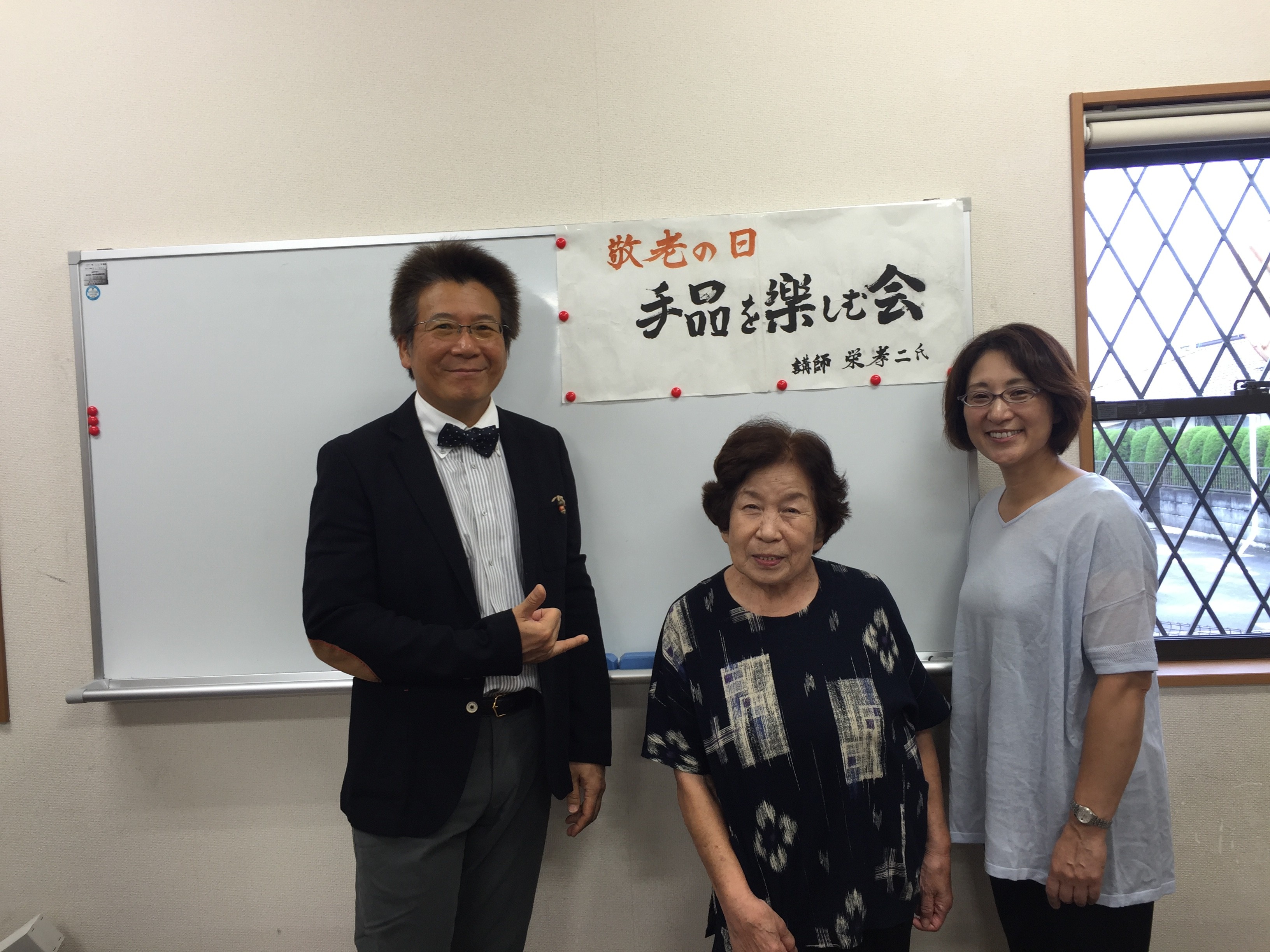 今日は敬老の日です。日本は高齢化社会をむかえています。元気に明るく老いるためには笑う事が大切というコンセプトから、江島台の自治会長さんのほうから依頼され、今日マジックショーに行って来ました。もちろん美人アシスタントは、嫁さんです。私に任された時間は1時間です。対象は70歳を超えている方々です。一週間前から入念な準備をして本番には、みんなに喜んで頂こうと思い今日を迎えました。午前中は紅白のお饅頭を対象の方に配り、午後は私の手品で楽しんでいただくという段取りになっていました。13:30に開演だったので1時間前に現場入りし、準備をしました。そうしている内に会場に来場の方々がみえました。地元ということもあって、顔なじみの患者さんも沢山みえました。開演時間になり、まず初めに少しは口の事の勉強してもらおうと高齢者に多いドライマウスに対する対策として、よく噛むこと、唾液腺のマッサージ、舌の運動など実践を交えて10分くらい学習してもらいました。そして楽しみの手品の披露です。あらかじめ決めておいたシナリオどうりに、順調に進んでいき、見てくださっている方々もリアクションがとても良かったので、私の方が楽しく演じさせてもらいました。1時間くらいのショータイムもアッと言う間に過ぎていきました。見て下さった方々から「面白かったよ。いっぱい笑ったよ。」言ってもらいました。私の両親も見に来てくれてました。敬老の日のプレゼントになったかなぁ。今日足元の悪い中、来てくれた方々どうもありがとうございます。オファーがかかれば、来年も参上いたします。その時には新しいネタを仕入れておきます。たのしみにしておいて下さいね。