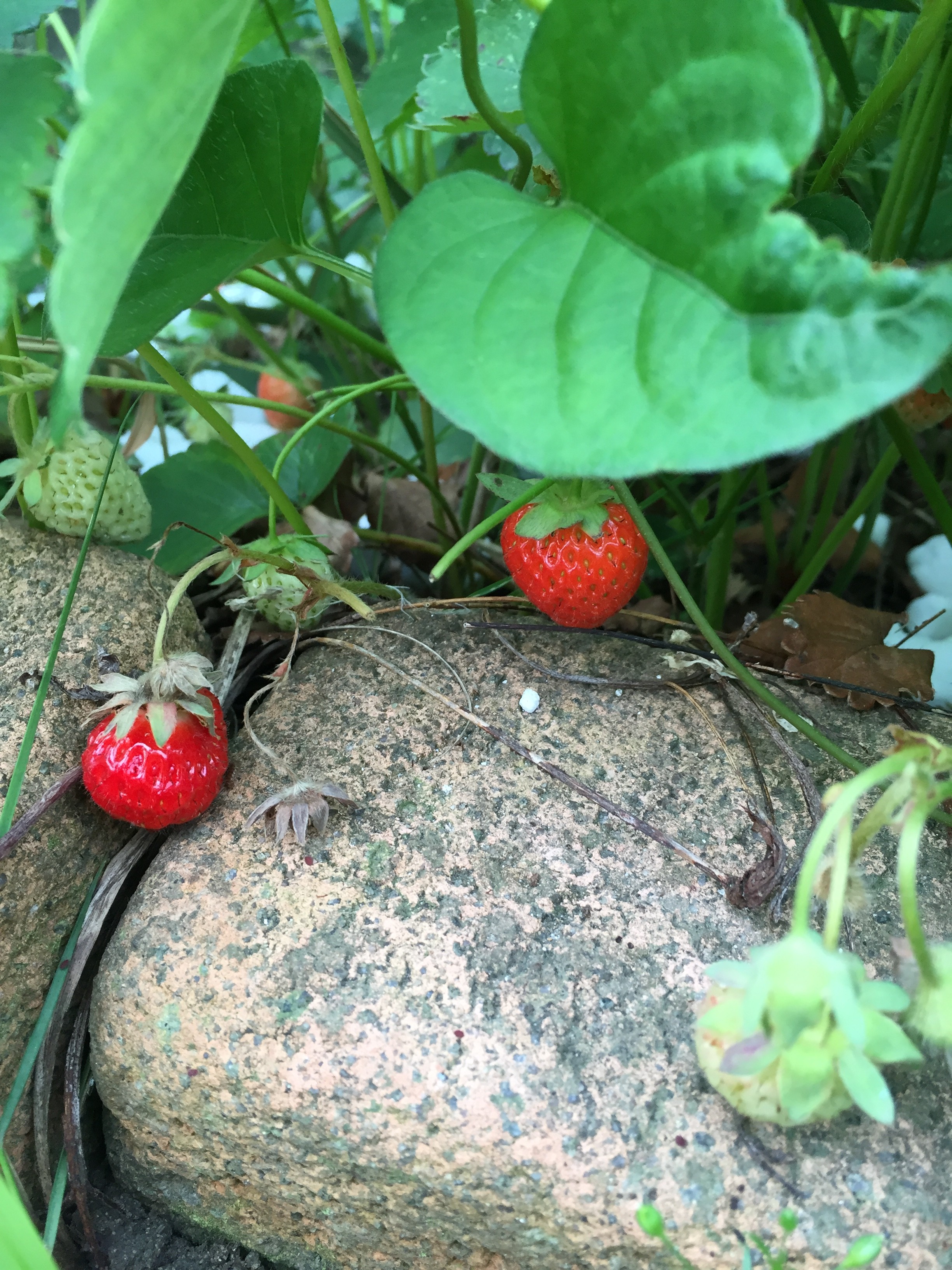 今年の我が家のイチゴ畑は、たくさんのイチゴが成りました。去年は、収穫する前に鳥に食べられてましたが、今年は防護ネットを張ったおかげでたくさん収穫出来ました。毎朝の日課はイチゴの収穫となってます。しかし、十分熟したモノは既にアリさんが食べている事がありますが、それはイチゴジャムにします。収穫されたイチゴは毎朝のヨーグルトに入れて食べます。味は、少し酸味がきいた甘さです。店で売ってる様な形のいい物ではありませんが、たいへん美味しく頂いてます。そして、次は観賞用の桃の実が大きくなって来てます。毎年この桃を食べるのですが、桃の香りはするのですが味は微妙です。今年はどうかな?ちなみに、嫁さんと娘はこの桃を食べたがりません。