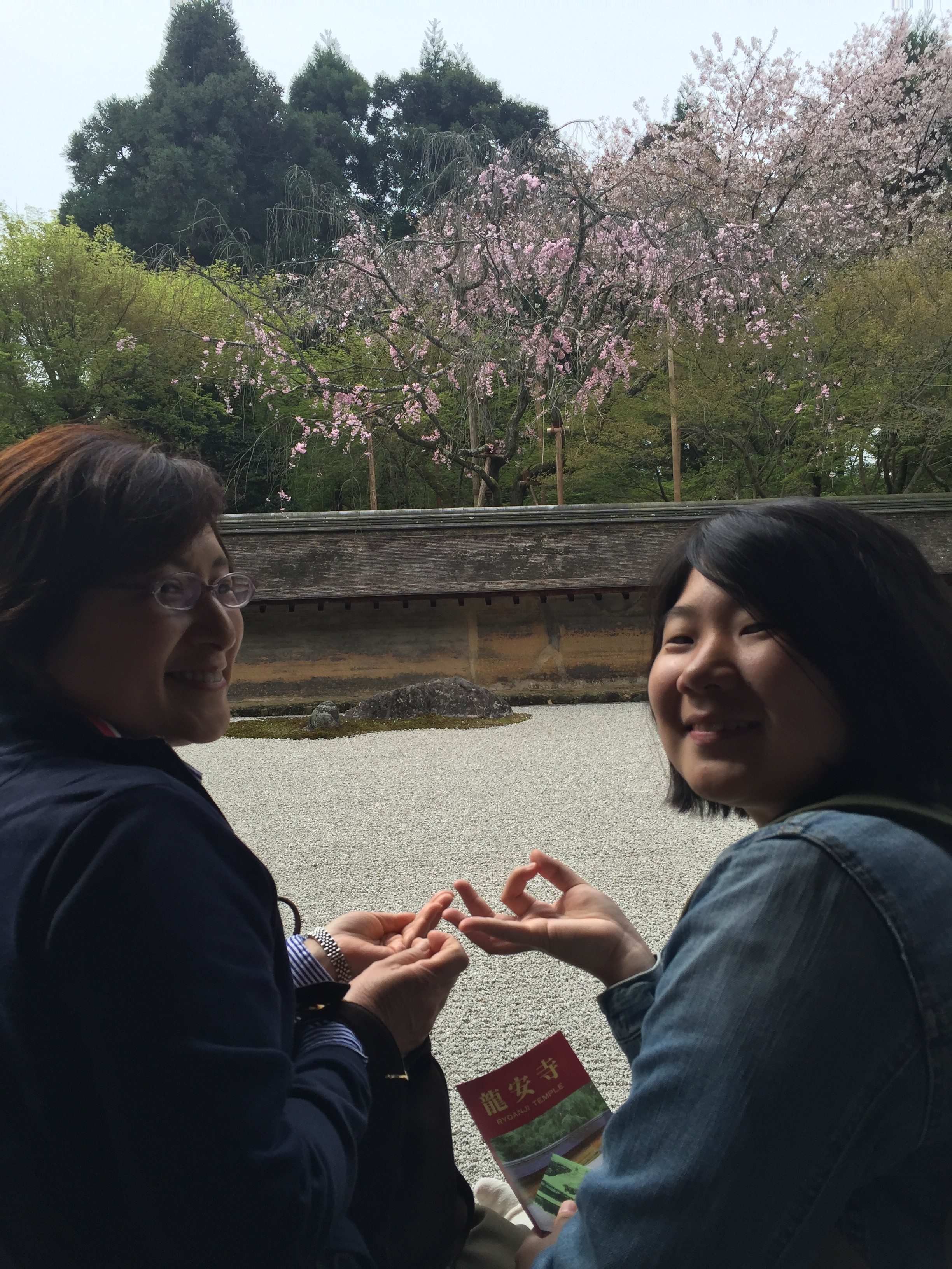 京都の今年の桜も見納めかと思い家族で石庭で有名な龍安寺と、御室桜の仁和寺を巡ってきました。龍安寺の石庭鑑賞では、何故か外人さん瞑想にふけっていて騒がしい観光客に”シャラップ!”と言ってました。