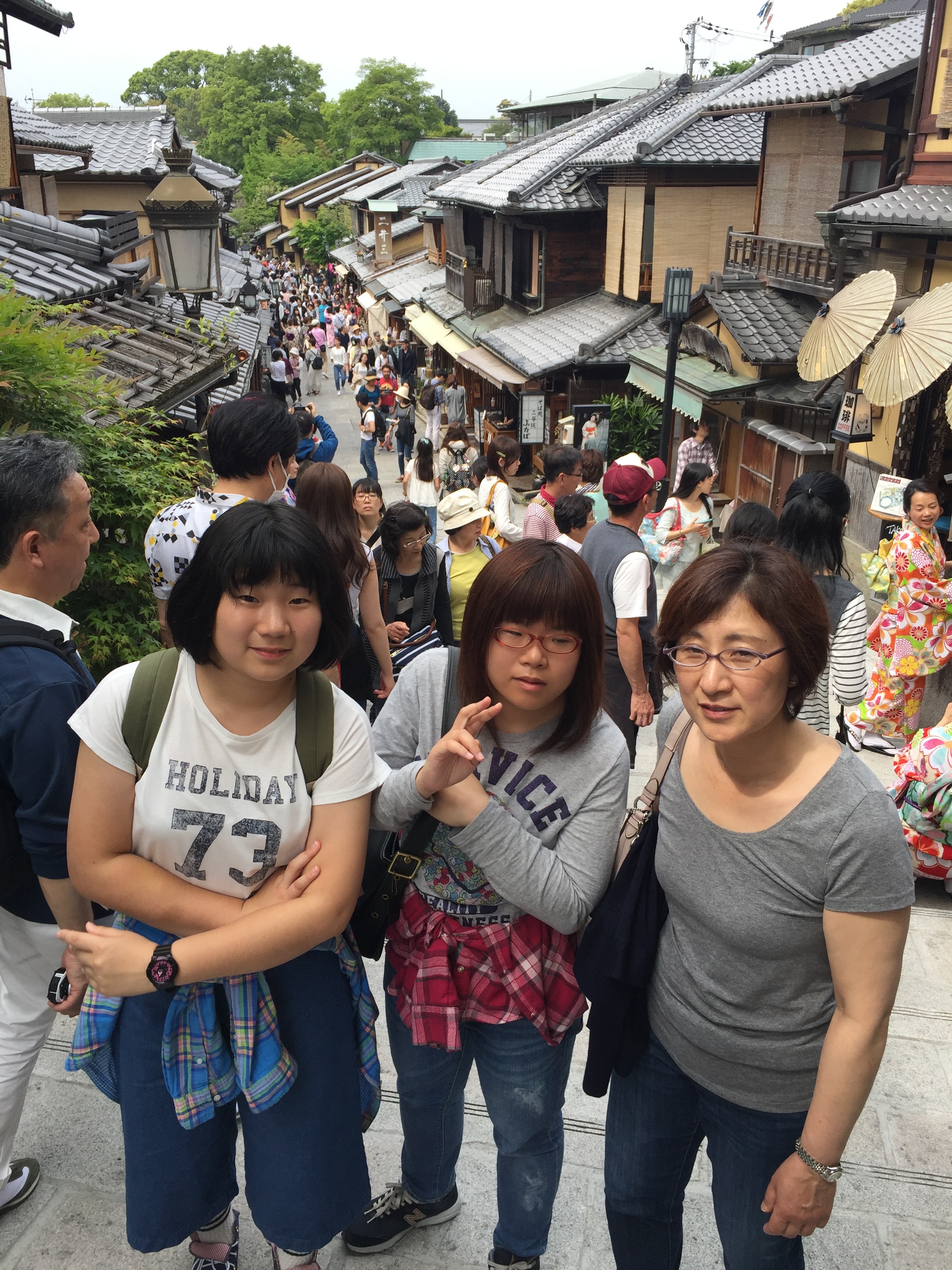 新喜劇を見た後は八坂神社を参拝し縁結びを願い、ねねの道を通って高台寺圓徳院を巡り、二年坂、三年坂を登り清水寺の参道を人混みのなかを行きました。連休の好天という事もありお祭騒ぎの様でした。白塗りに着物を着た青い目の外国人の方と三年坂ですれ違った時、あまりもの美しさについ思わず振り返ってしまいました。清水寺の参道では、いつもの様に八つ橋の試食でお腹が一杯になりました。その摂取したカロリーをなんとか消費しようと京都駅まで少し歩幅を広めで歩いて行きました。が、パスタ屋さんで、サラダ食べ放題をしてしまいました。なんだかんだで、トータル16㎞歩きました。結果、1.3㎏痩せていました。