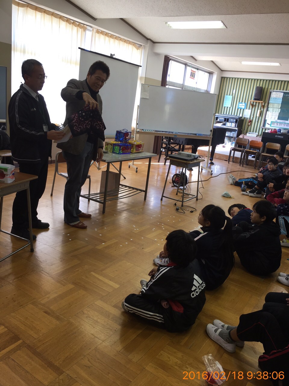 毎年バレンタインの頃に石薬師小学校の六年生の子供逹に、卒業のはなむけも兼ねて歯科保健教室に行ってます。12歳といえば大人の歯並びがほぼ完成する頃になります。一生自分の歯で食べていく為に口腔衛生に注意喚起してもらう必要があります。歯の構造、虫歯になる仕組み、だ液の役割り、噛むことの大切さ、歯磨きとエチケットについてパワーポイントを使って真面目に、かつ、面白おかしく講義してきました。なんか金八先生みたいでした。♪暮れ~なずむ街の~ひか~りと影の中~贈る言葉~♪そこそこ上手に行った方だと思いました。講義の後は衛生士さんの熱のこもったブラッシング指導でした。子供逹も彼女の歯ブラシの動かし方に合わせてみんな真面目に磨いていました。最後に頑張って授業を聞いてくれたご褒美に、私の手品を披露しました。